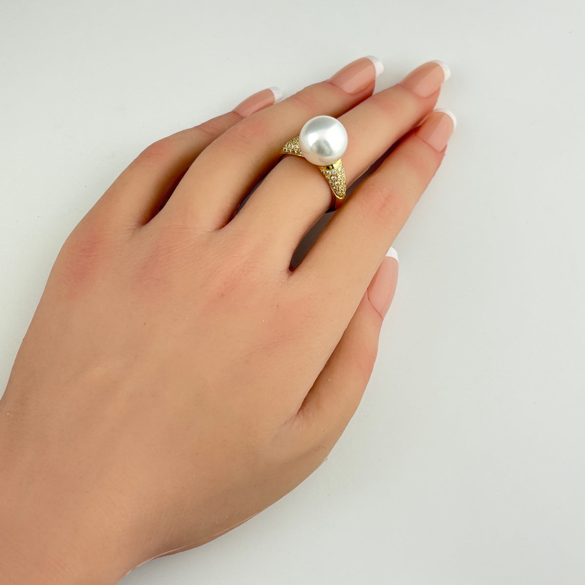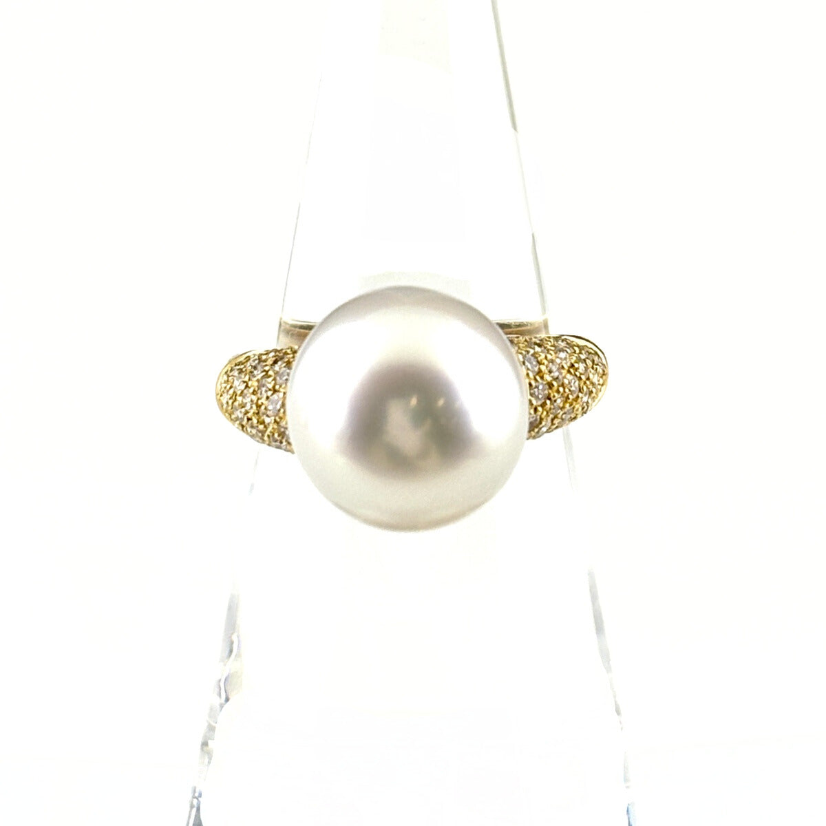 パール デザインリング YG イエローゴールド 指輪 メレダイヤ 真珠 リング 14号 K18 パール ダイヤモンド レディース ノンブランドジュエリー 【中古】nbjwl