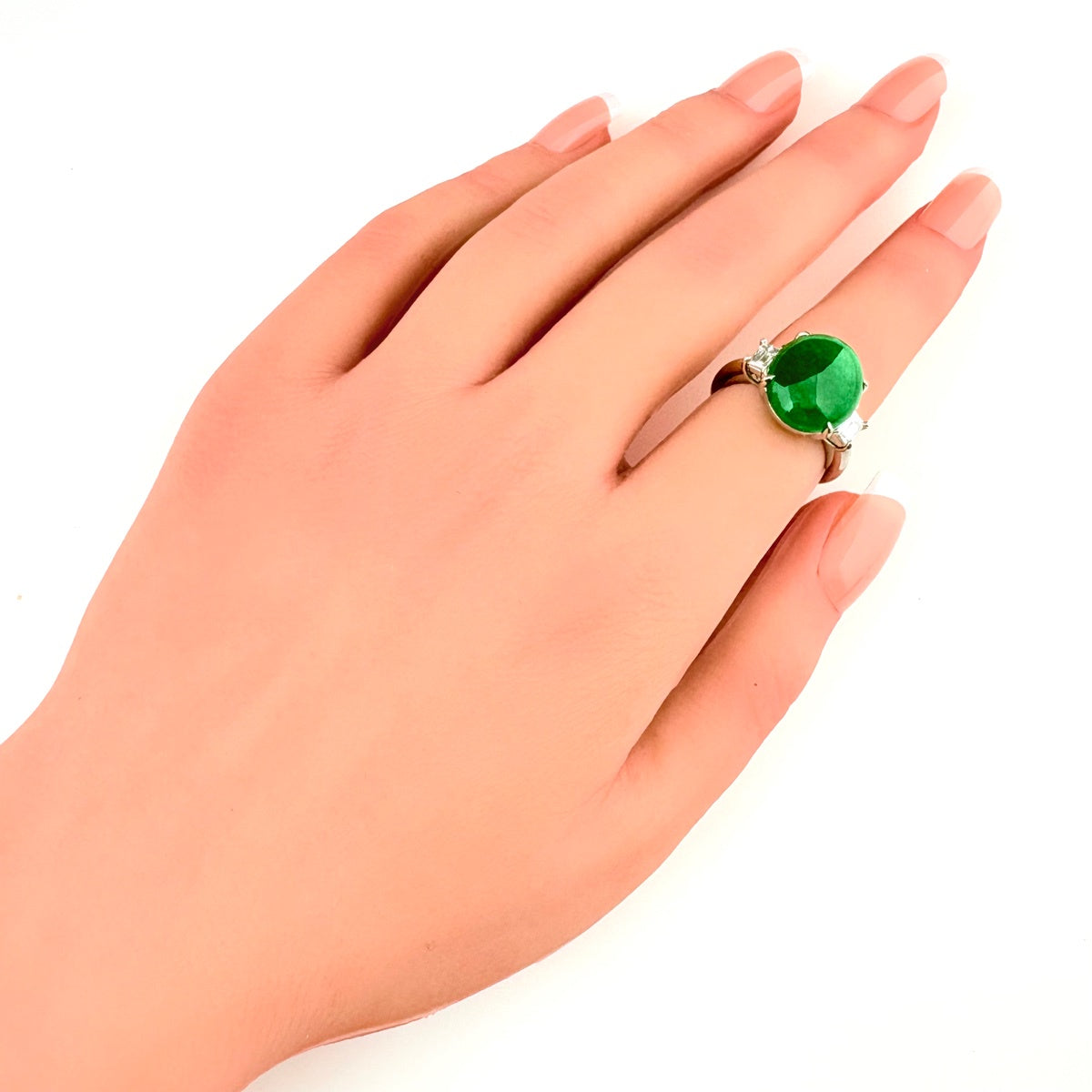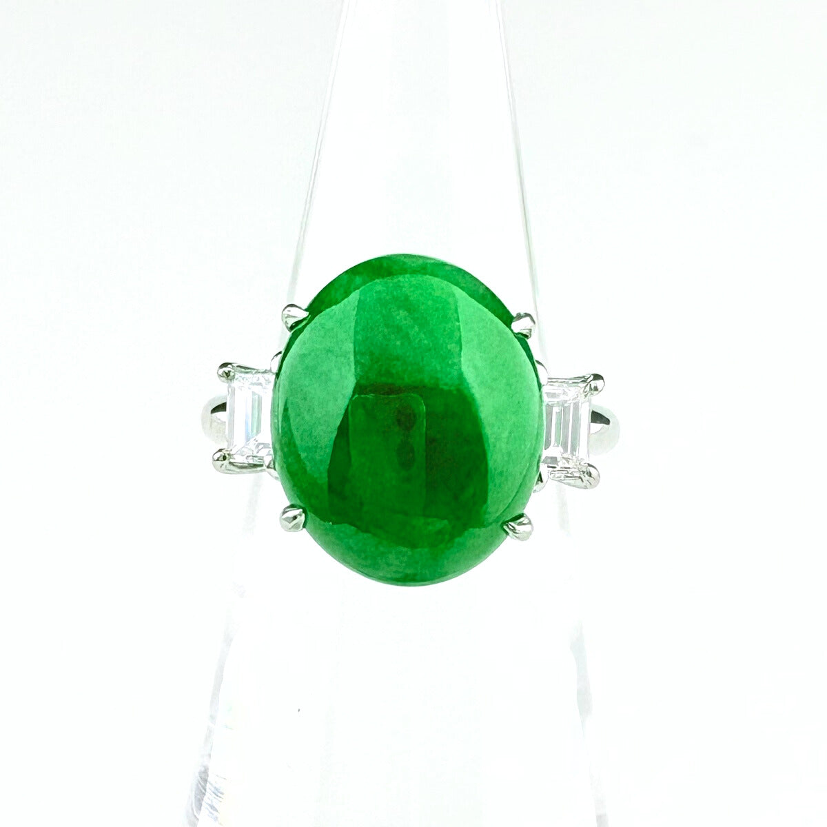 翡翠 デザインリング プラチナ 指輪 メレダイヤ リング 9号 Pt900 ヒスイ ダイヤモンド レディース 【中古】nbjwl
