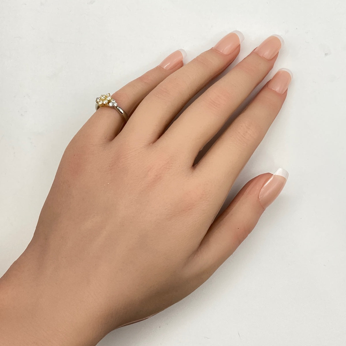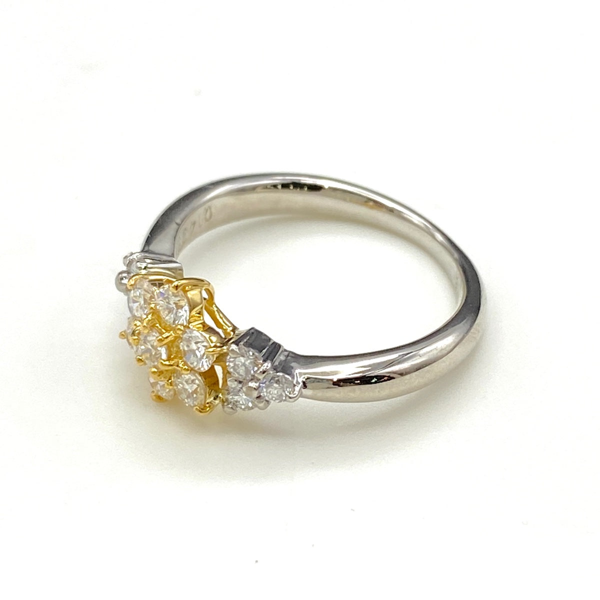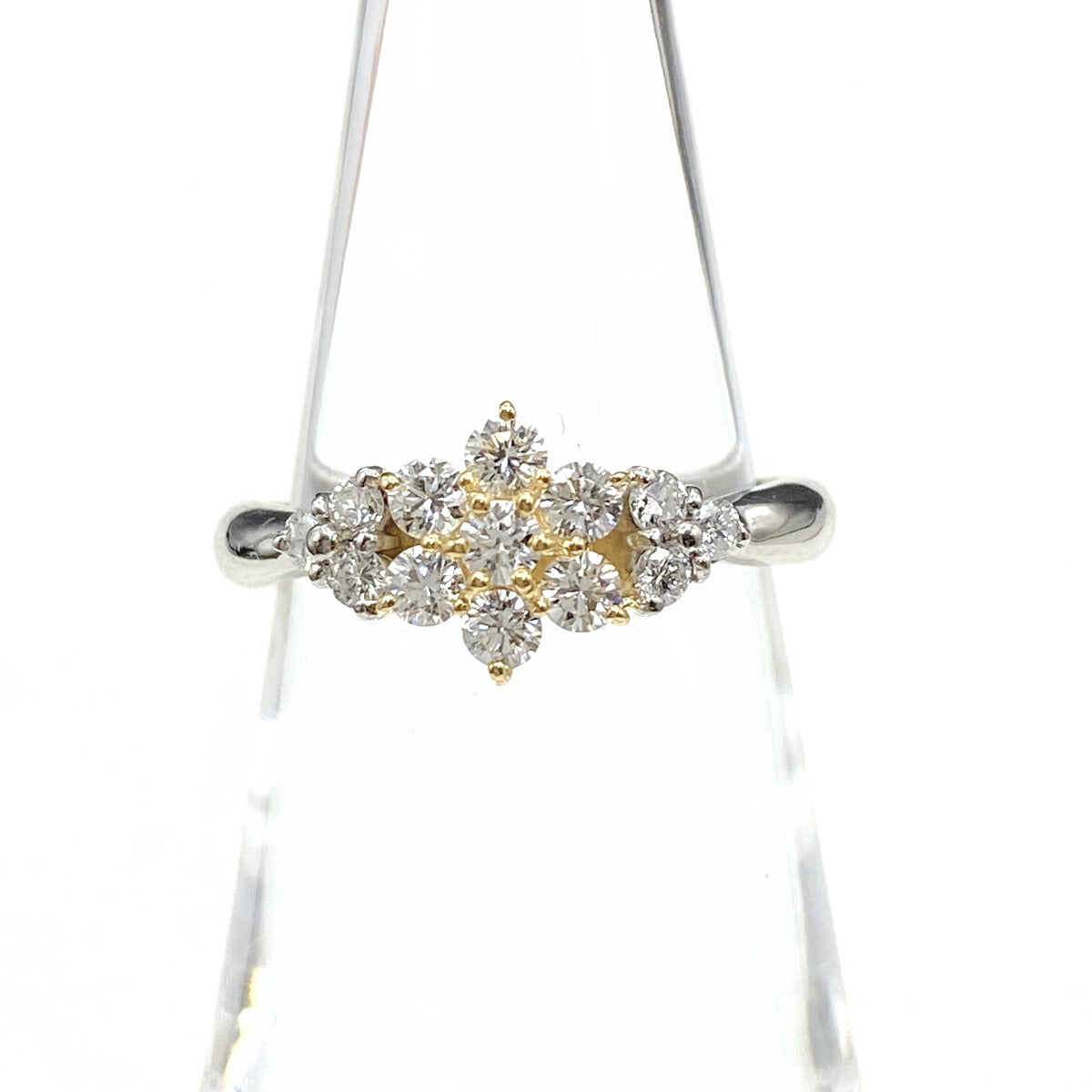 メレダイヤ デザインリング プラチナ YG イエローゴールド 指輪 リング 9号 Pt900 K18 ダイヤモンド レディース 【中古】nbjwl