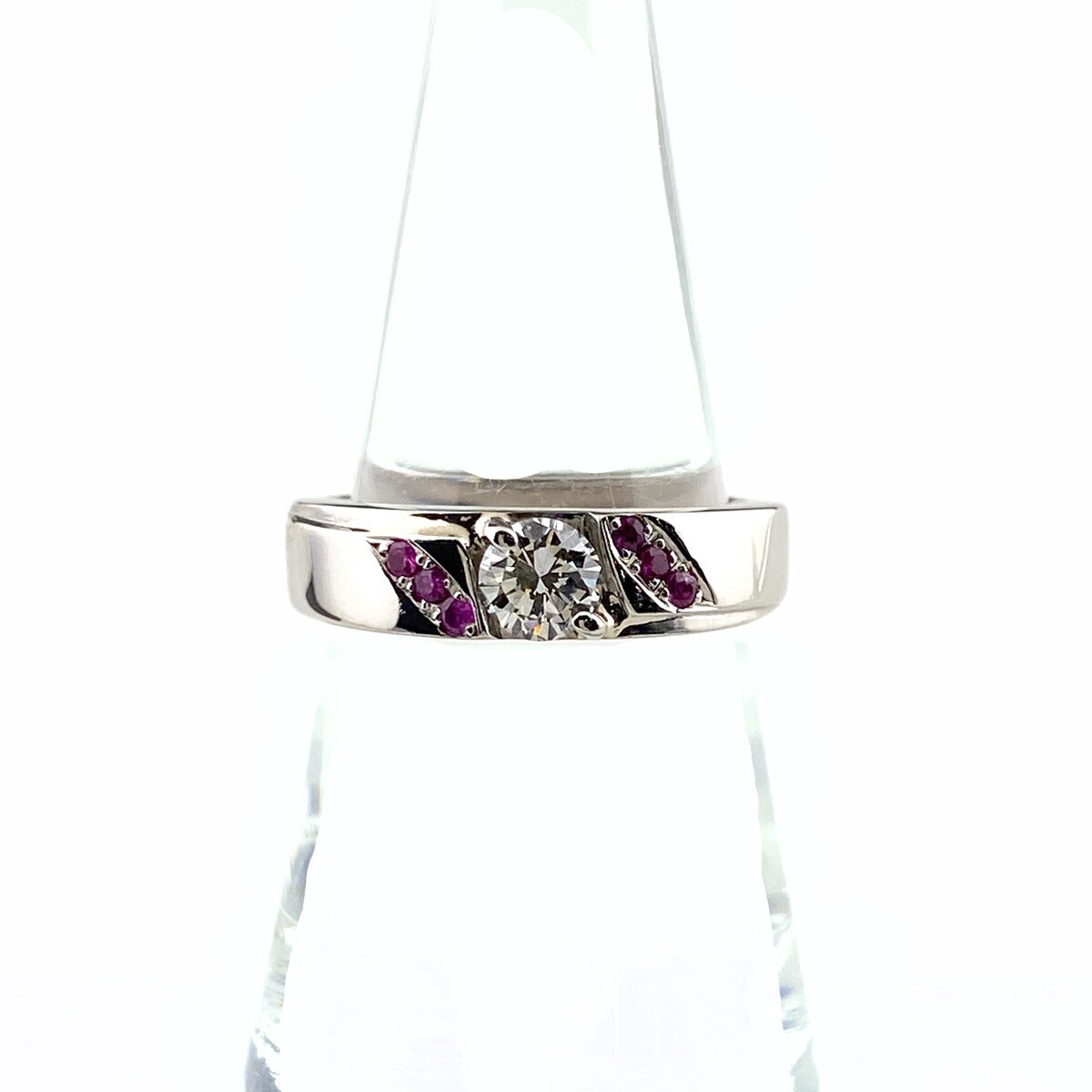 ダイヤモンド デザインリング プラチナ 指輪 メレダイヤ リング 16号 Pt900 ダイヤモンド ルビー レディース 【中古】nbjwl
