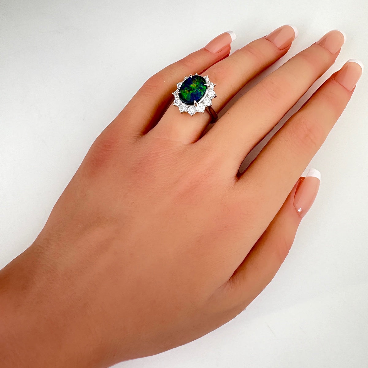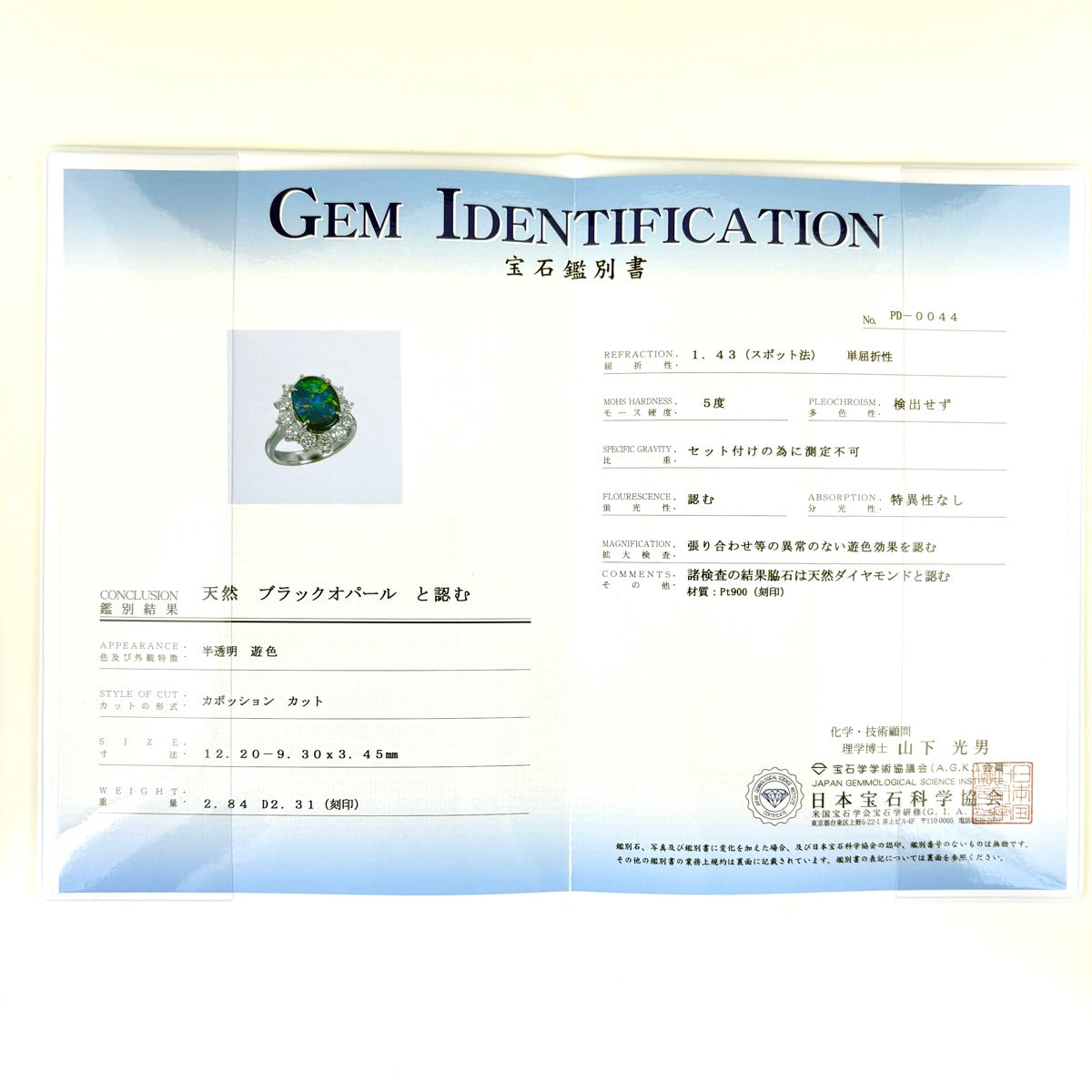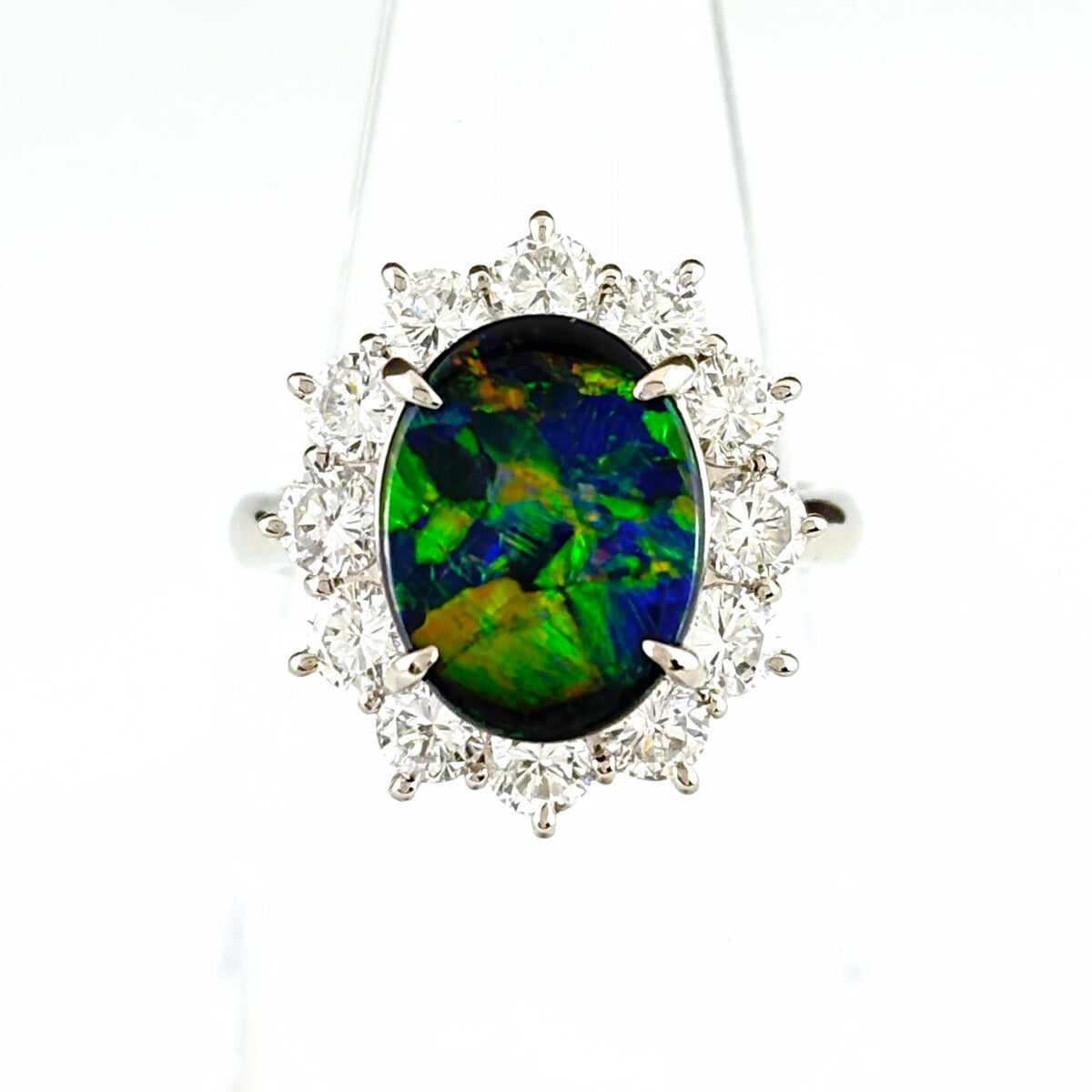 ブラックオパール デザインリング プラチナ 指輪 メレダイヤ リング 11.5号 Pt900 ブラックオパール ダイヤモンド レディース ノンブランドジュエリー 【中古】nbjwl