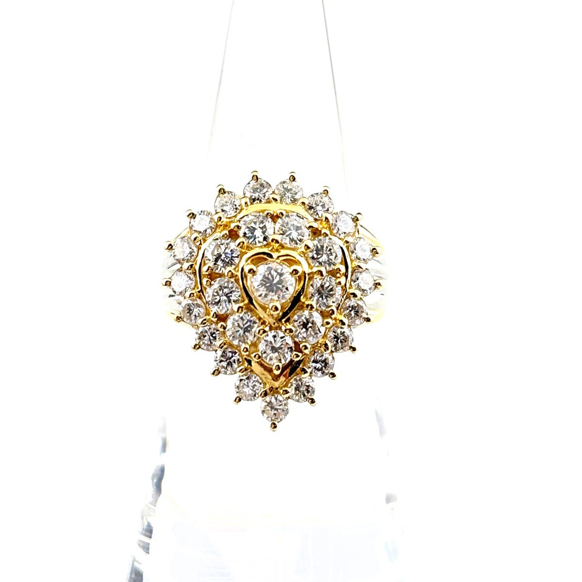 メレダイヤ デザインリング YG イエローゴールド プラチナ 指輪 リング 13号 K18 Pt900 ダイヤモンド レディース 【中古】nbjwl
