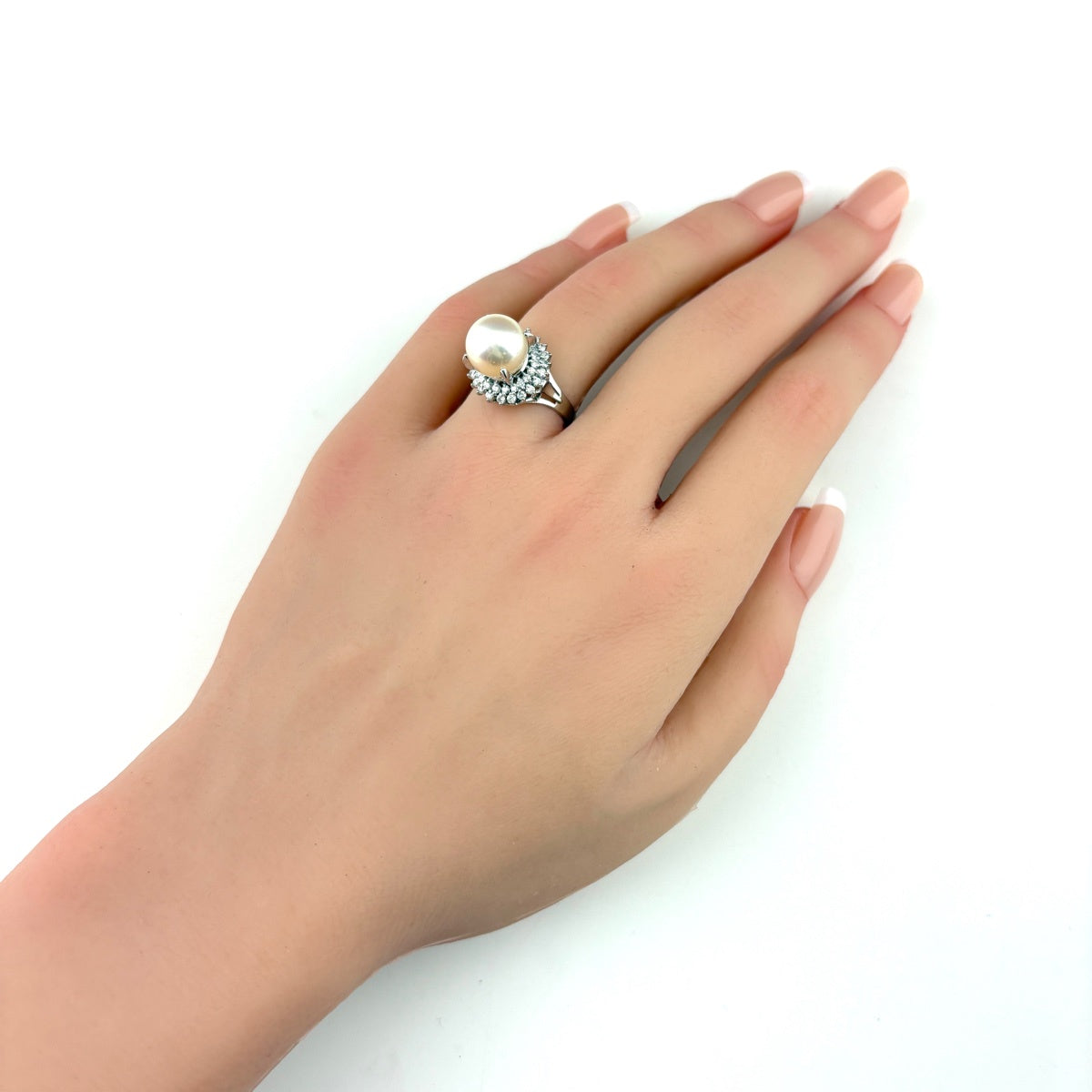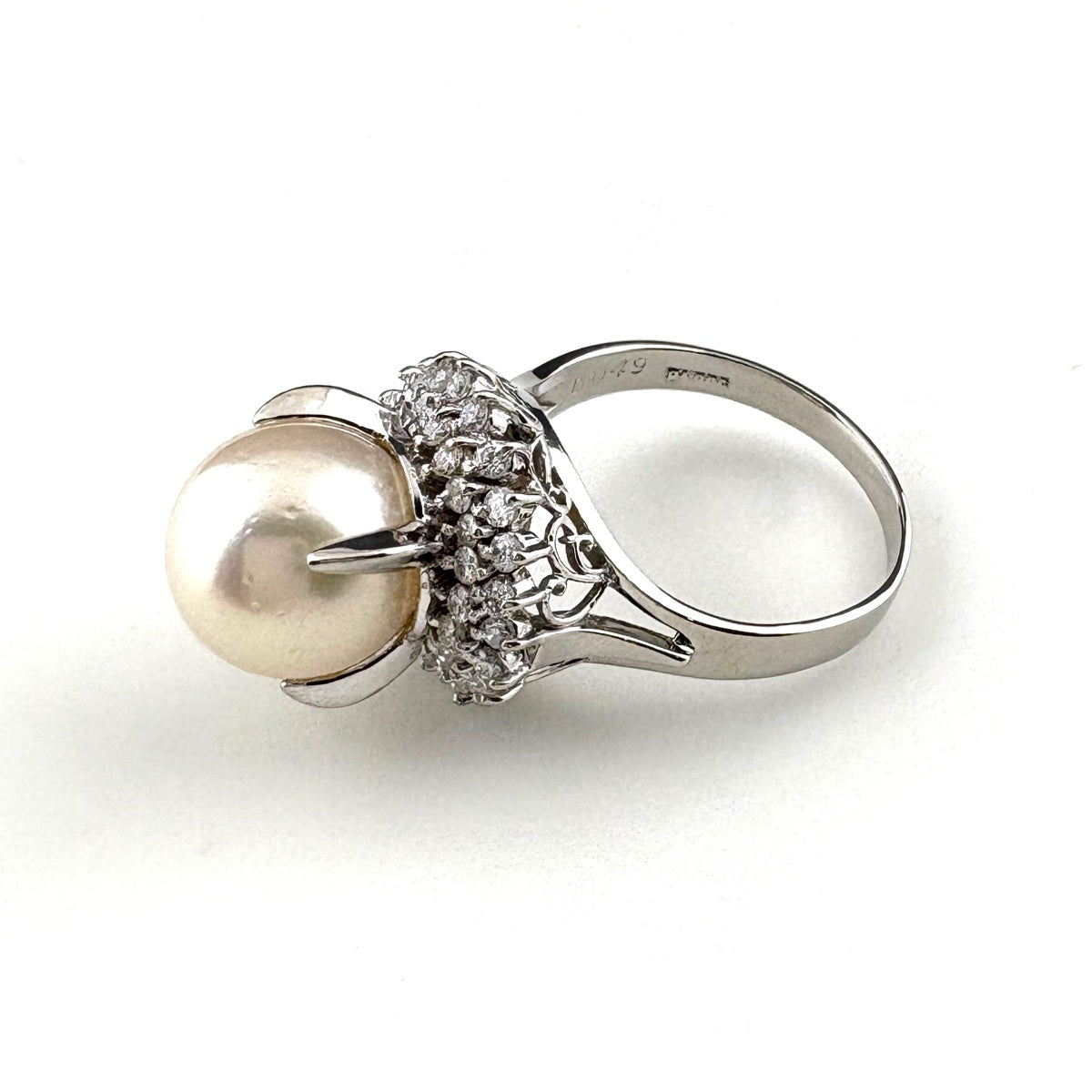 パール デザインリング プラチナ 指輪 メレダイヤ 真珠 リング 11号 Pt900 パール ダイヤモンド レディース 【中古】nbjwl