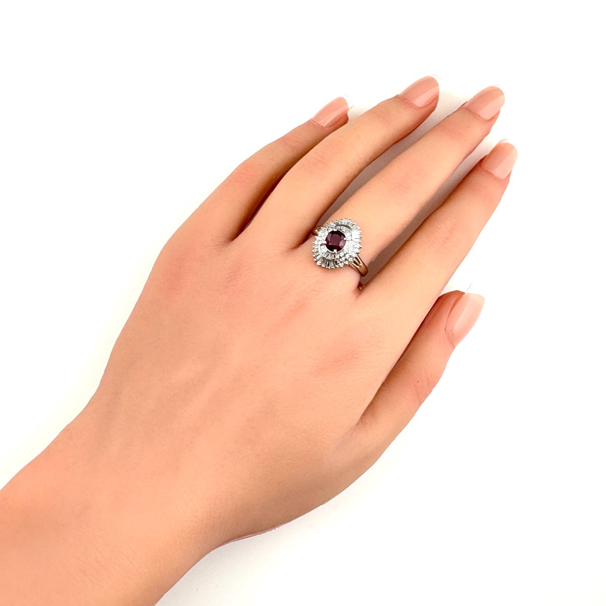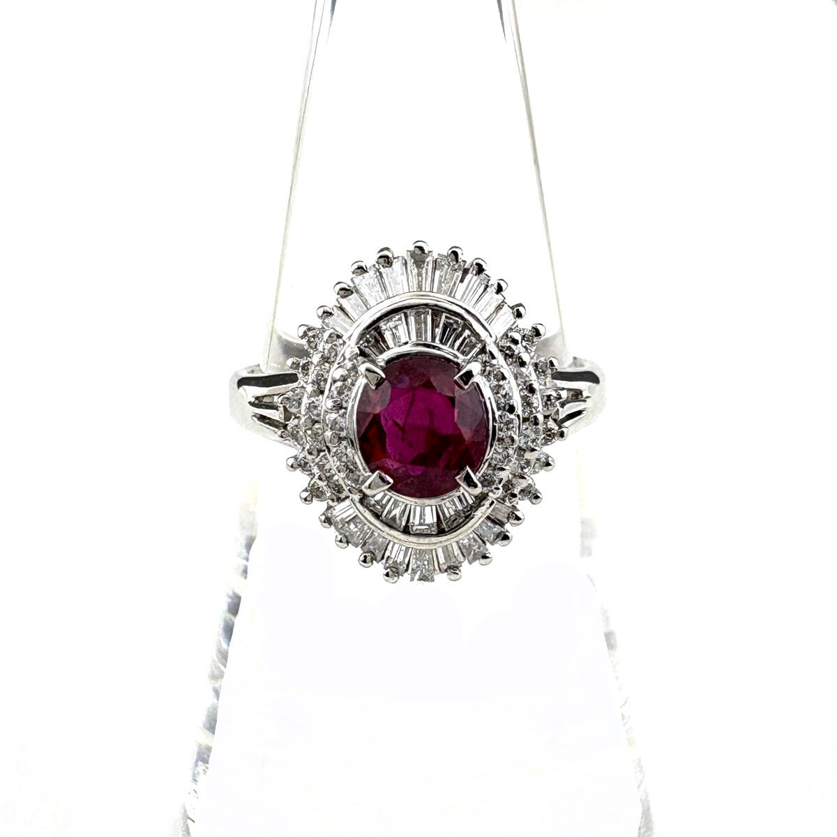 ルビー デザインリング プラチナ メレダイヤ 指輪 リング 15号 Pt900 ルビー ダイヤモンド レディース ノンブランドジュエリー 【中古】nbjwl