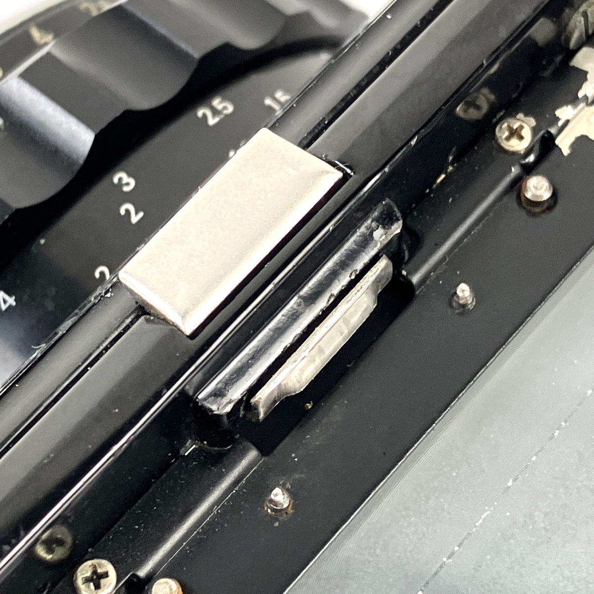 ピントフード脱着ロックボタンに不具合があり、ファインダーの取付けができません。