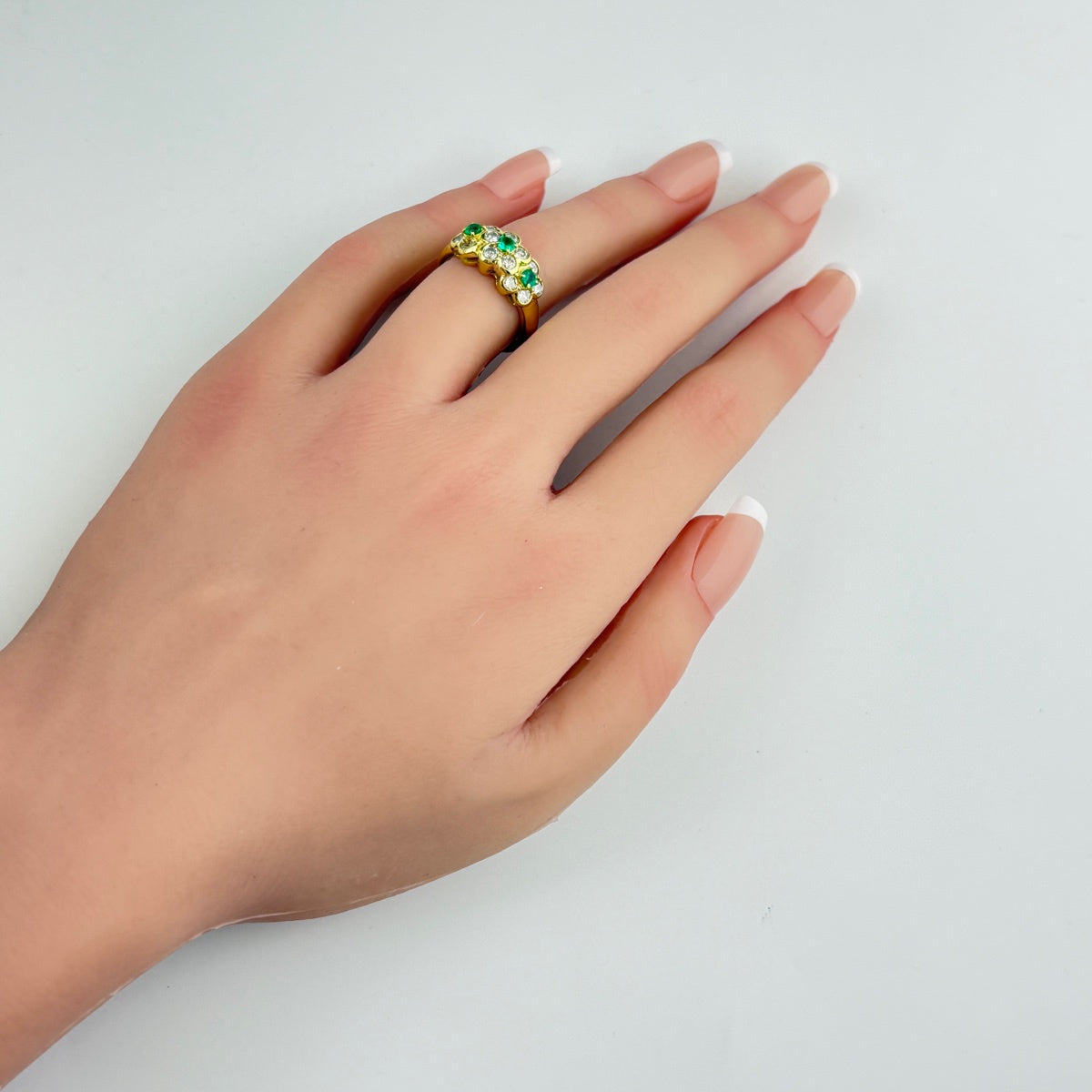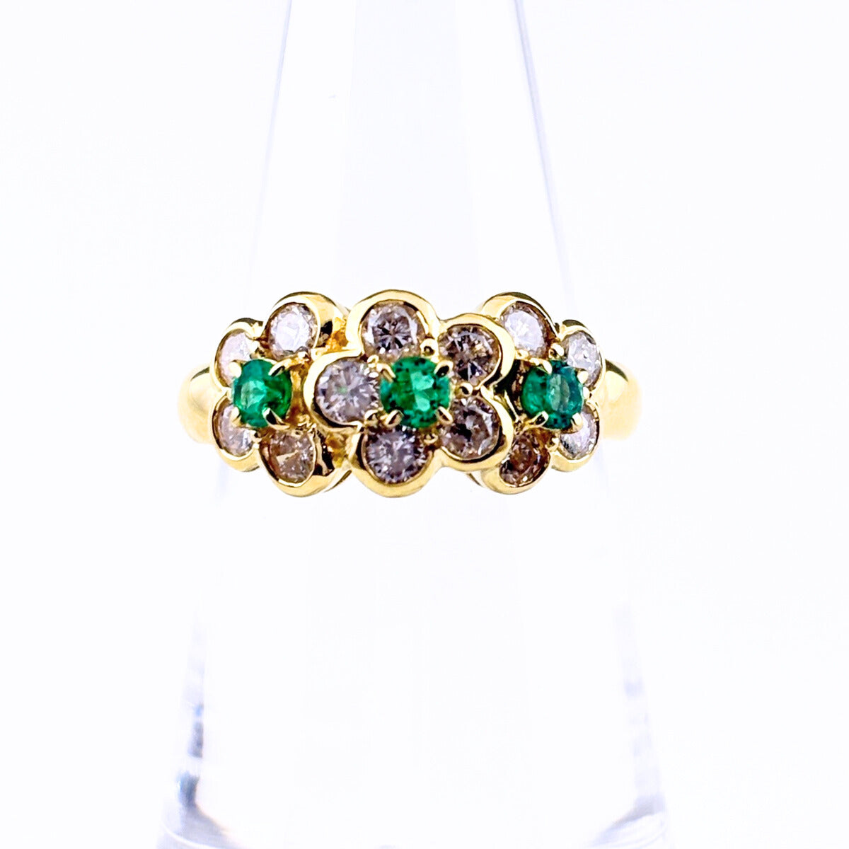 エメラルド デザインリング YG イエローゴールド メレダイヤ 指輪 リング 12号 K18 エメラルド ダイヤモンド レディース ノンブランドジュエリー 【中古】nbjwl