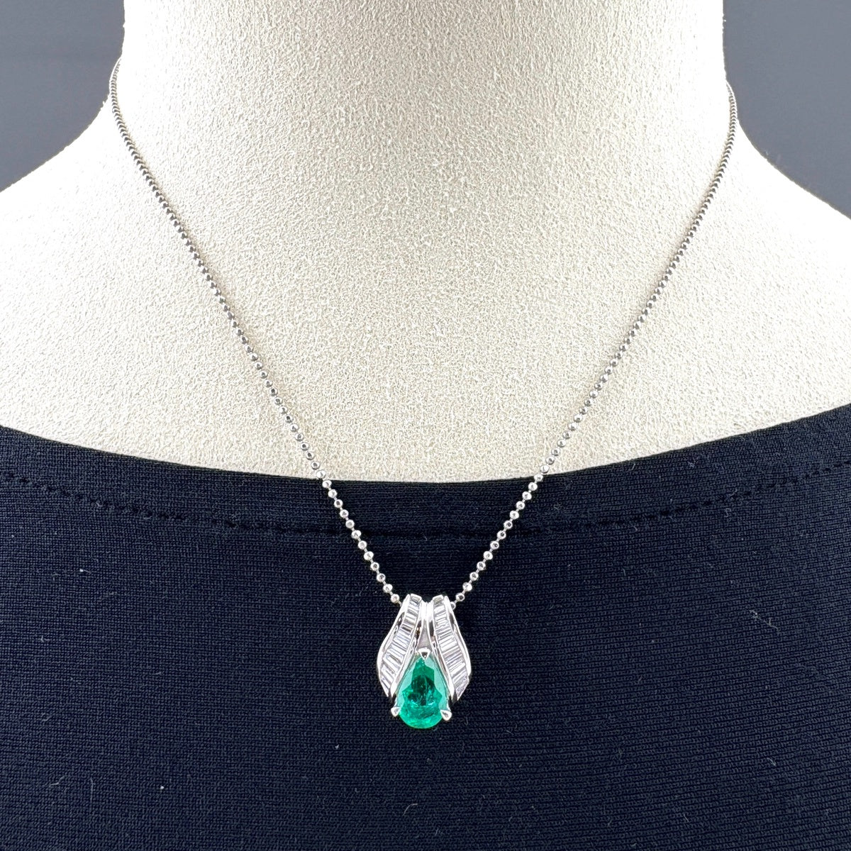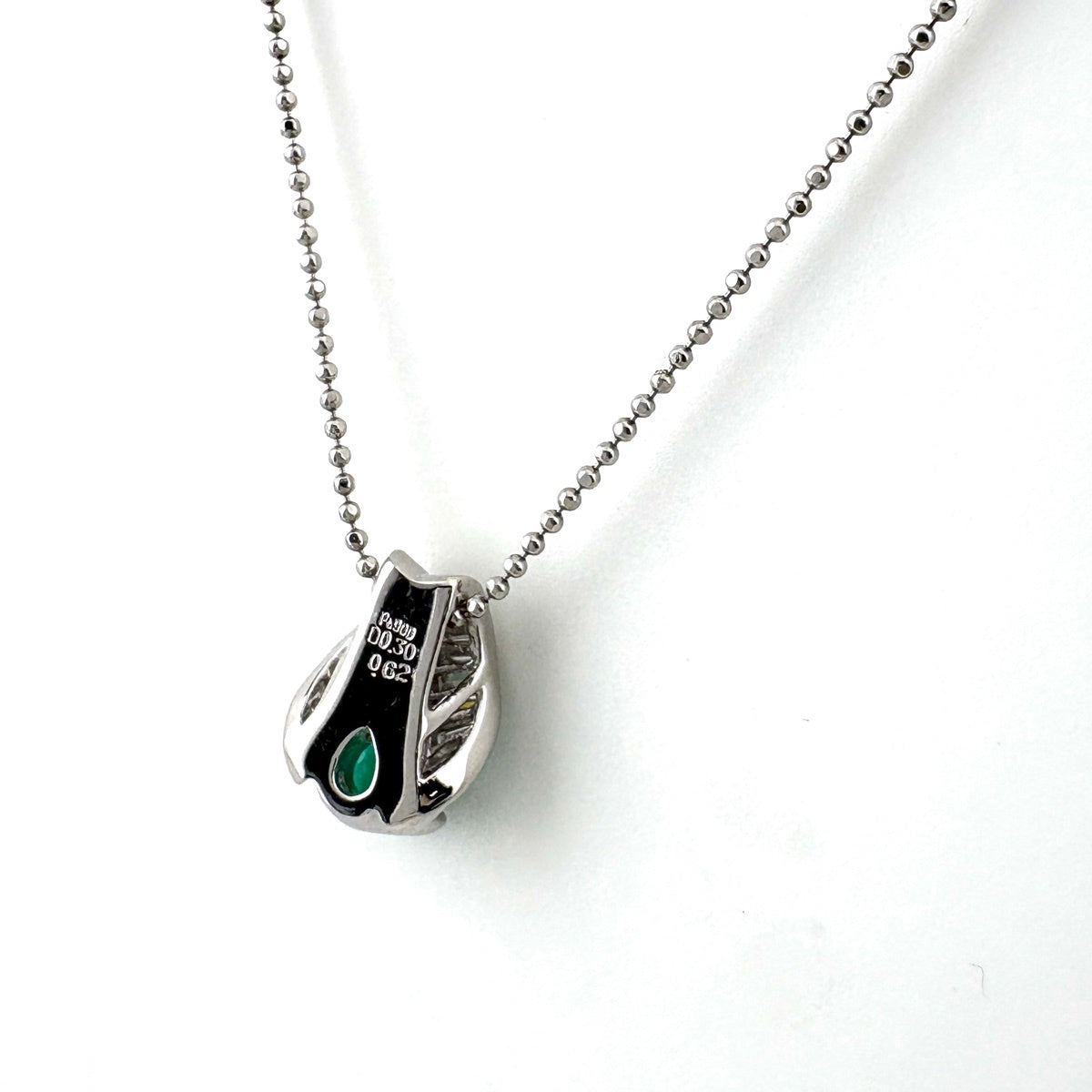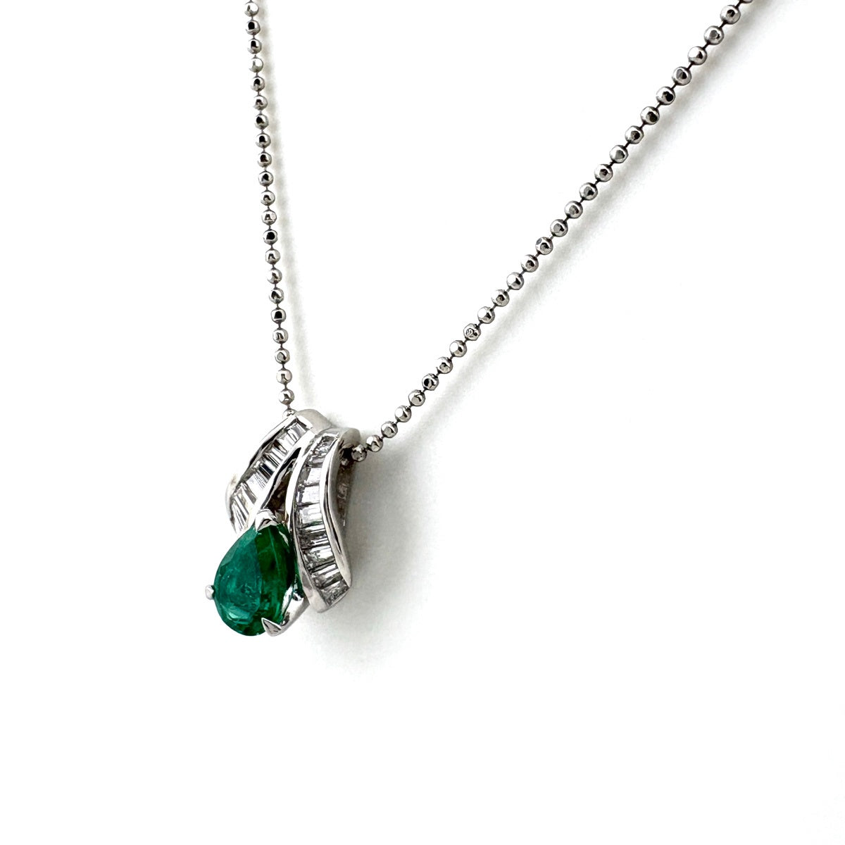 エメラルド デザインネックレス プラチナ ペンダント メレダイヤ ネックレス Pt900 Pt850 エメラルド レディース ノンブランドジュエリー 【中古】nbjwl