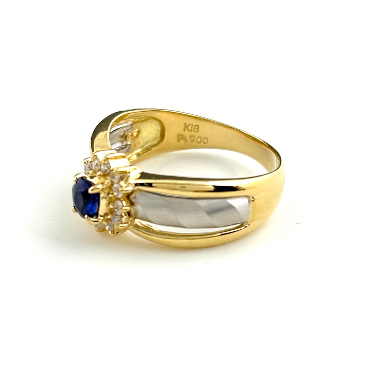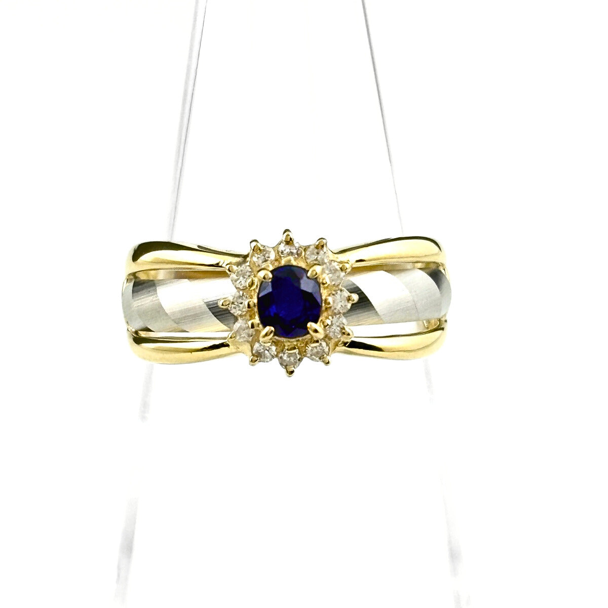 サファイア デザインリング YG イエローゴールド プラチナ 指輪 メレダイヤ ダイヤモンド リング 11号 K18 Pt900 サファイア レディース ノンブランドジュエリー 【中古】nbjwl