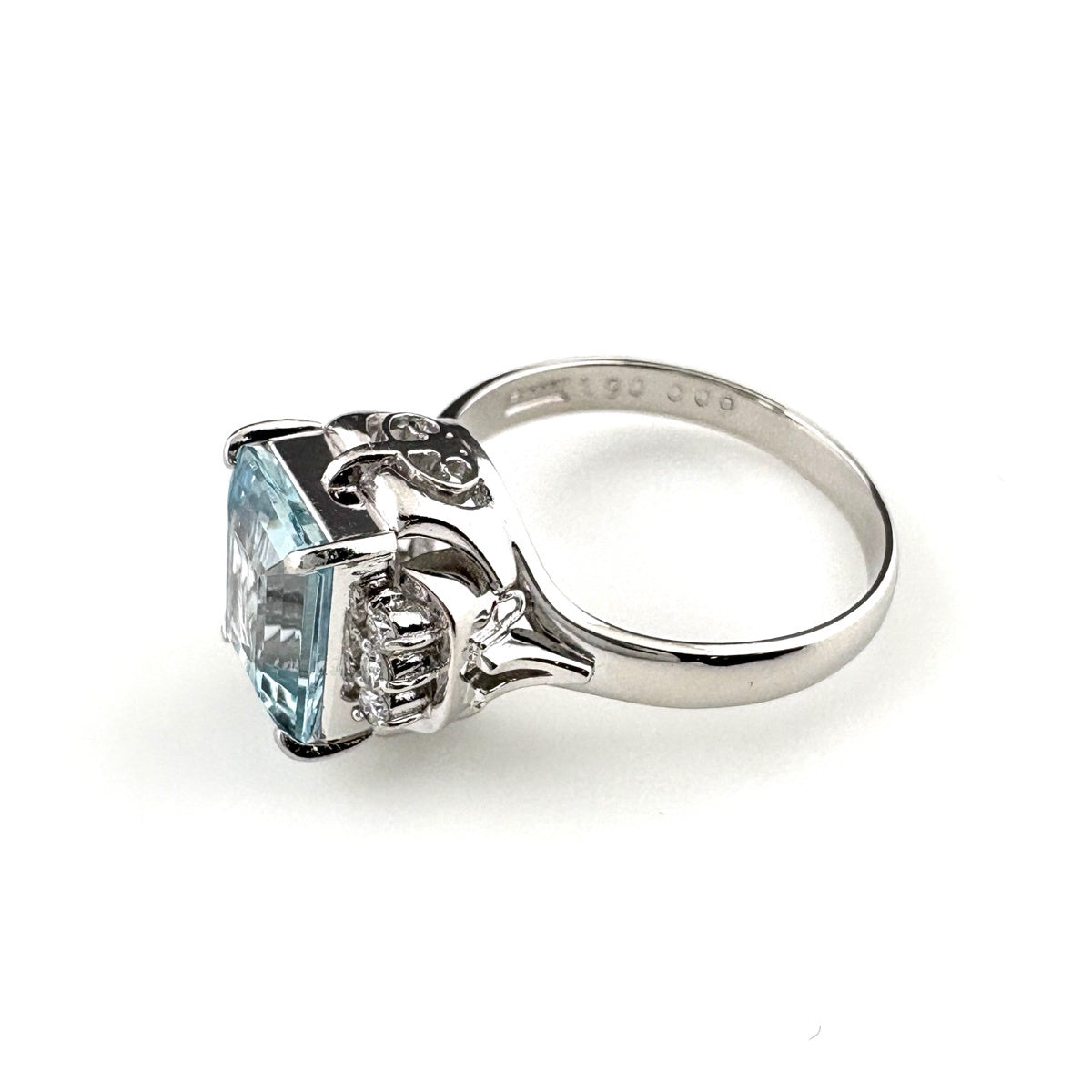 アクアマリン デザインリング プラチナ 指輪 メレダイヤ リング 12号 Pt900 アクアマリン ダイヤモンド レディース 【中古】nbjwl
