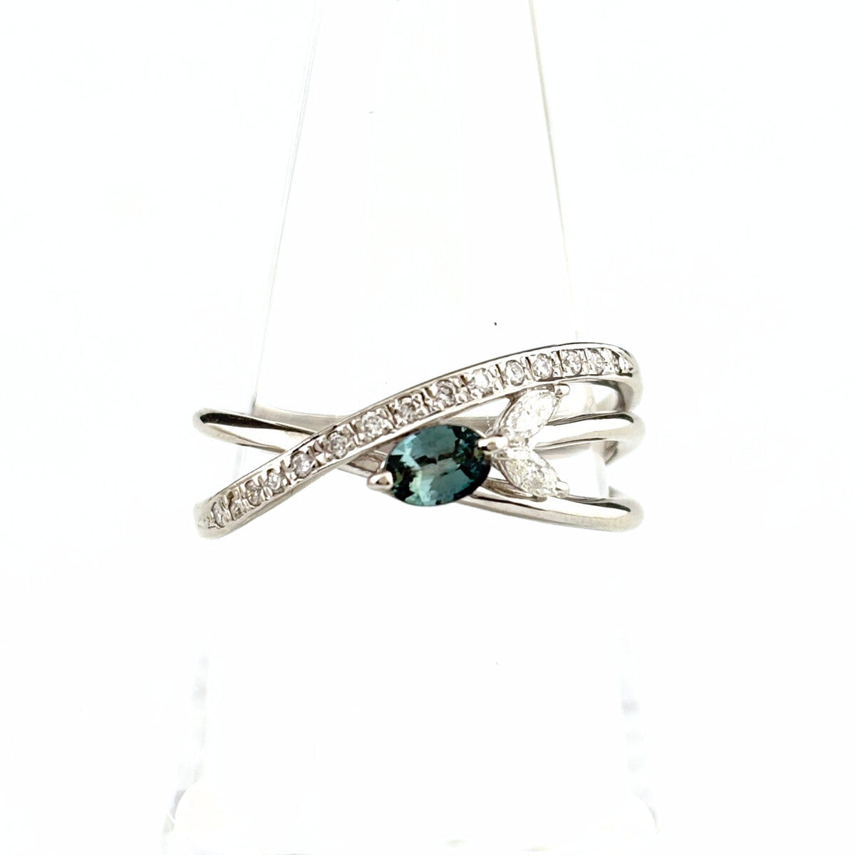アレキサンドライト デザインリング プラチナ 指輪 メレダイヤ リング 15.5号 Pt900 アレキサンドライト ダイヤモンド レディース ノンブランドジュエリー 【中古】nbjwl
