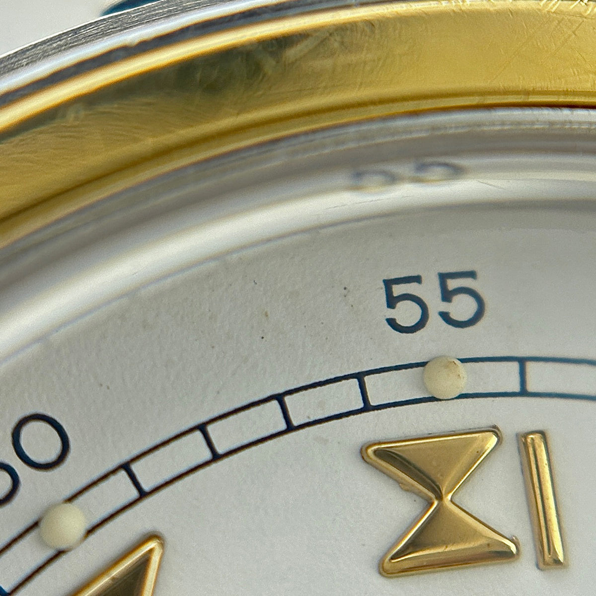 コメント 風防に多数のキズや欠け、文字盤に汚れ、全体的に肉眼で確認できるキズや打痕、ブレスに伸びがございます。