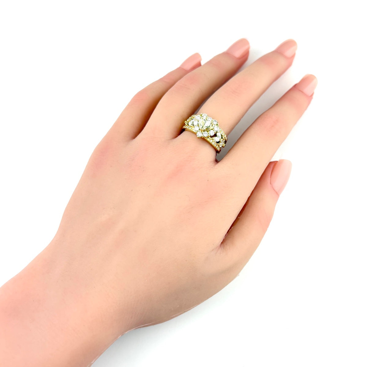 ハートモチーフ YG K18 指輪 メレダイヤ リング 12号 ダイヤモンド レディース ノンブランドジュエリー 【中古】nbjwl