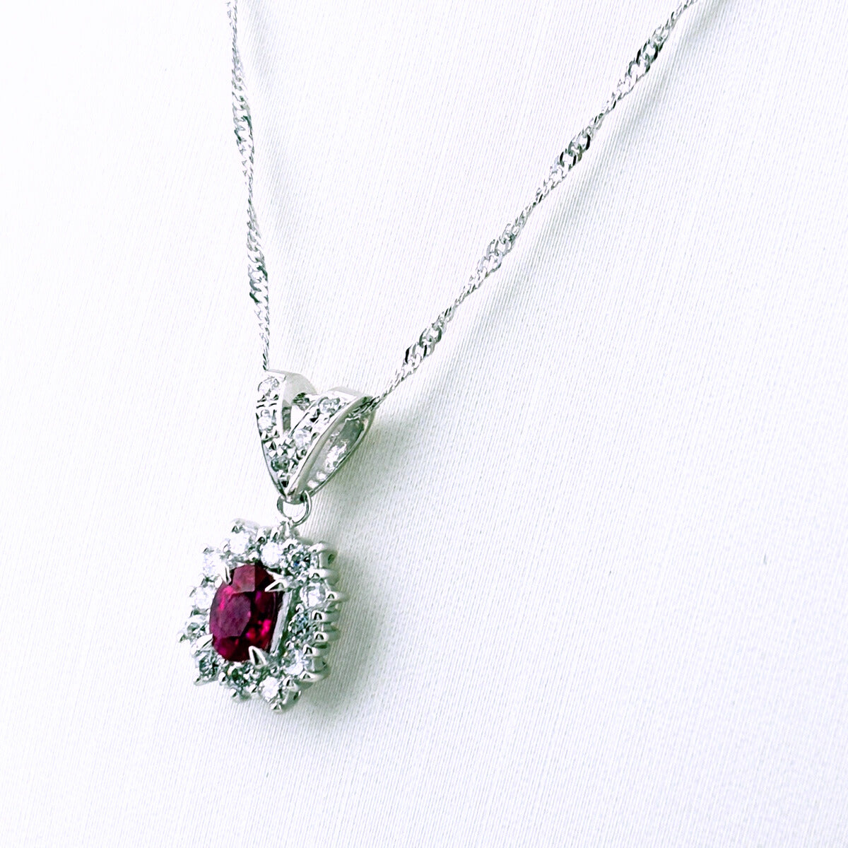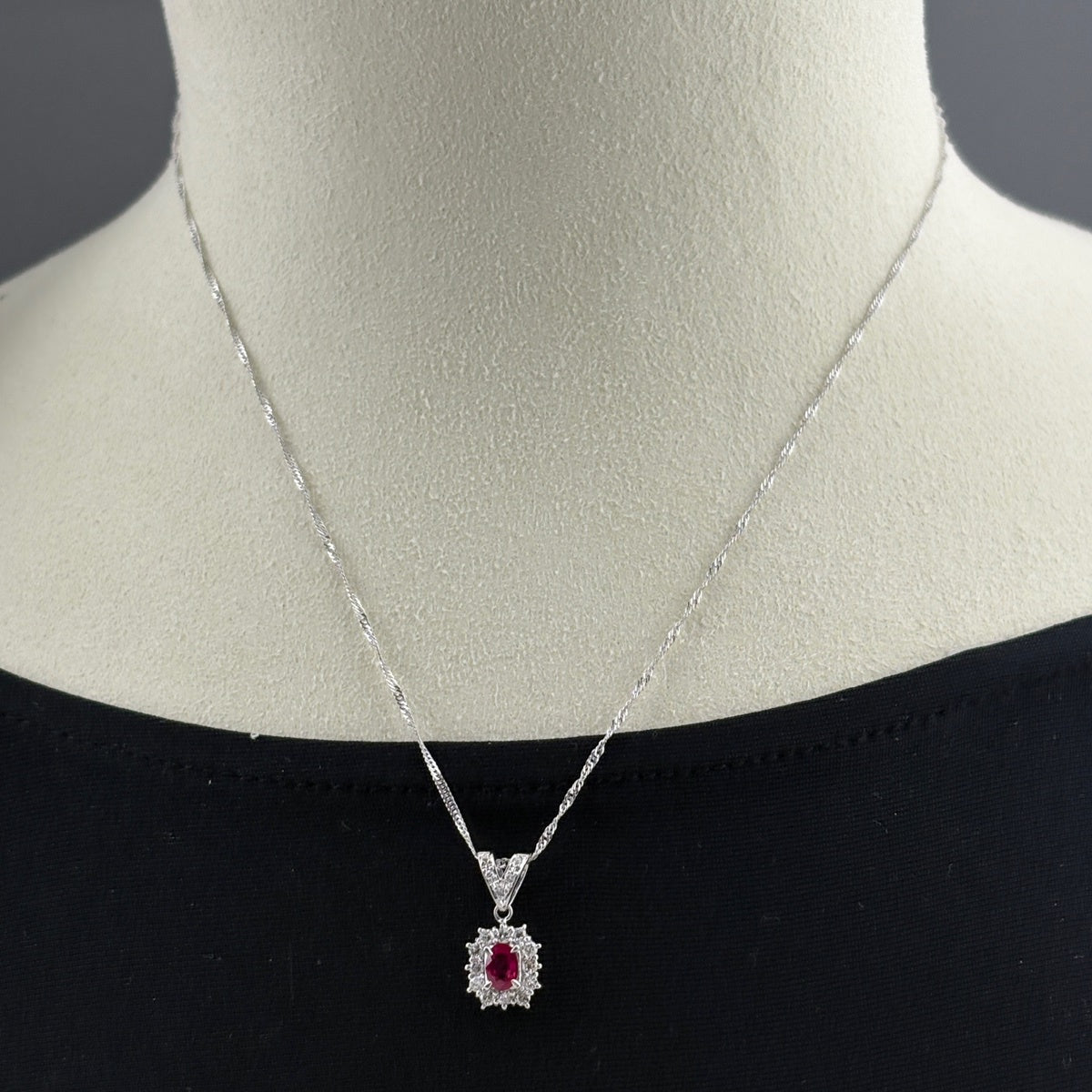 ルビー デザインネックレス WG ホワイトゴールド プラチナ メレダイヤ ペンダント ネックレス K18 WG Pt900 レディース ノンブランドジュエリー 【中古】nbjwl