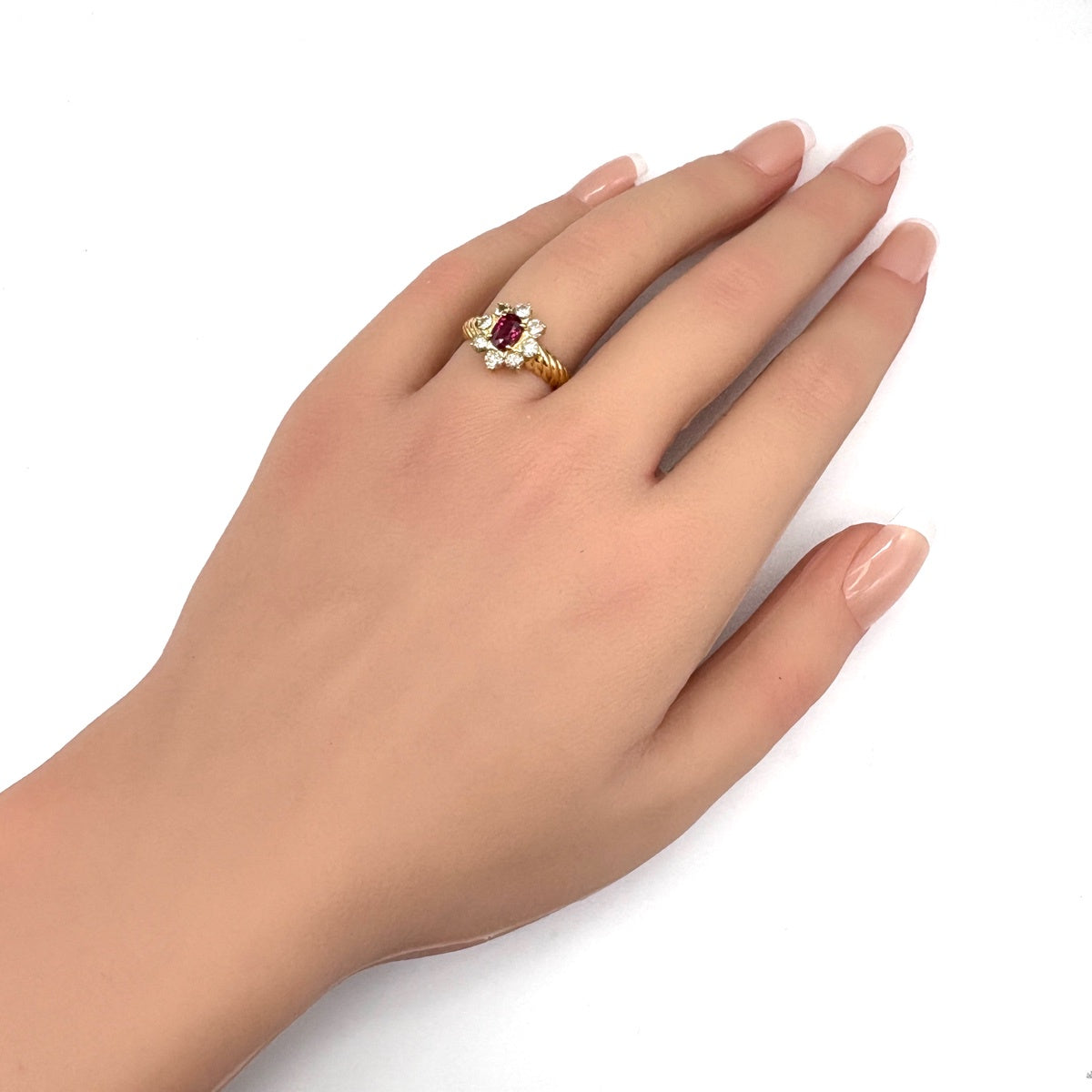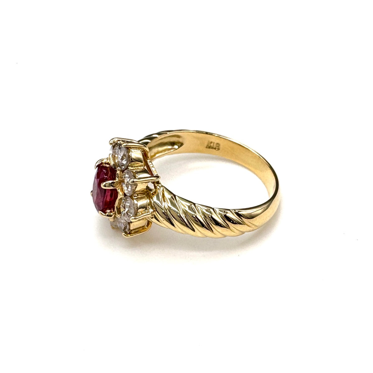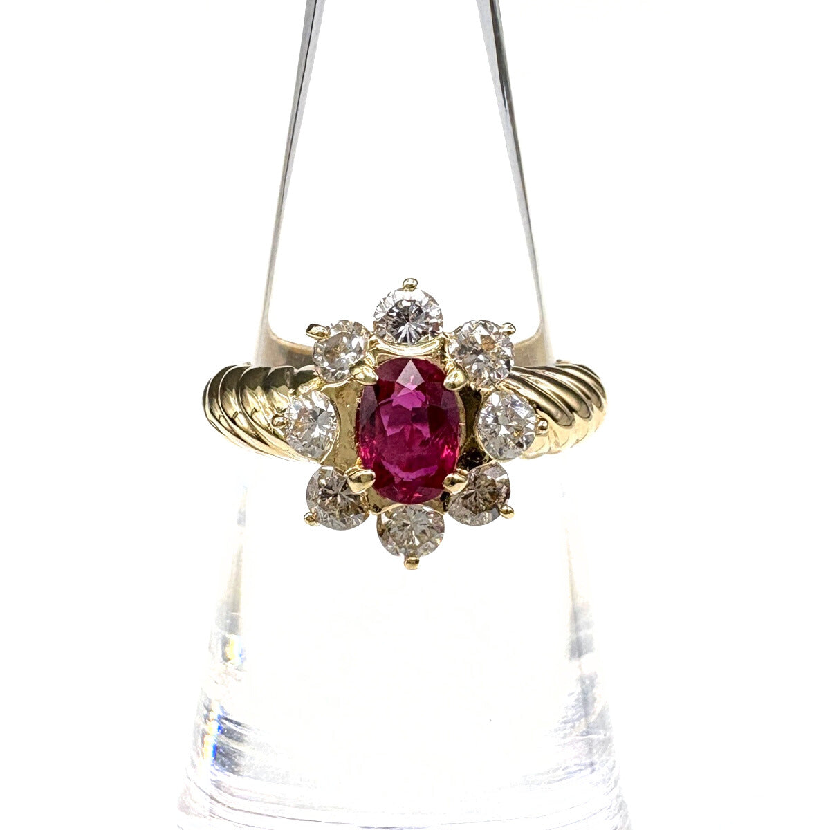 ルビー デザインリング YG イエローゴールド 指輪 メレダイヤ リング 11号 K18 ルビー ダイヤモンド レディース ノンブランドジュエリー 【中古】nbjwl