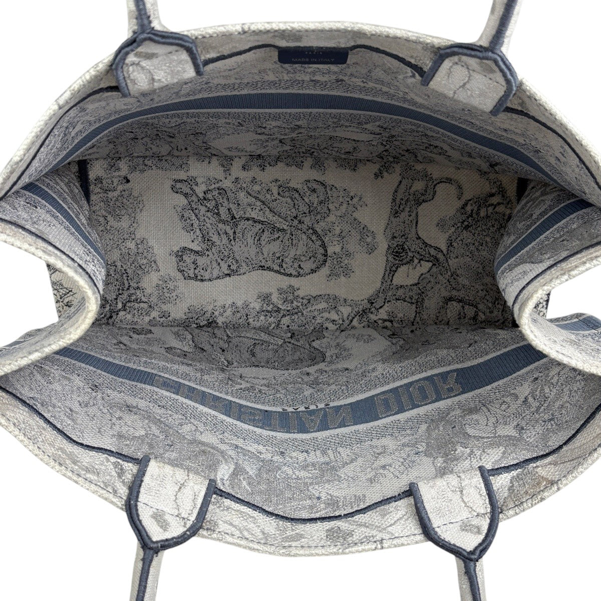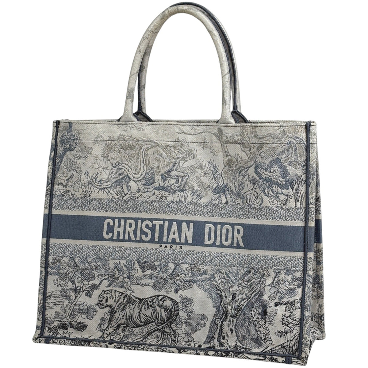 クリスチャンディオール ブック トートバッグ ラージ リバース トワル ドゥ ジュイ エンブロイダリー トートバッグ キャンバス グレー ホワイト レディース ブランドバッグ・小物 【中古】brbag