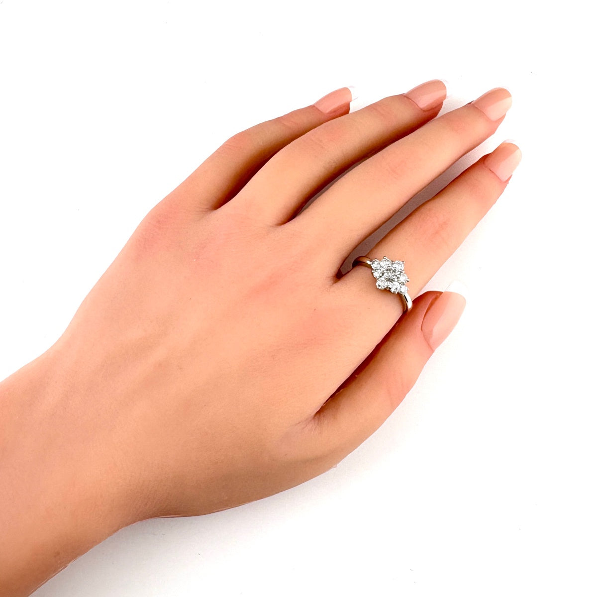 フラワーモチーフ デザインリング プラチナ 指輪 メレダイヤ 花 リング 16号 Pt900 ダイヤモンド レディース ノンブランドジュエリー 【中古】nbjwl