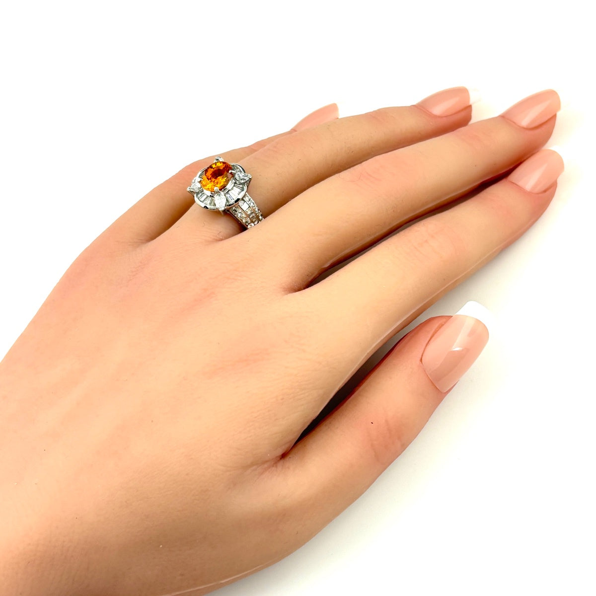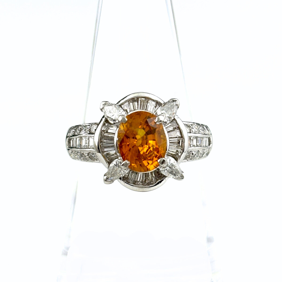 ゴールデンサファイア デザインリング プラチナ 指輪 メレダイヤ リング 15.5号 Pt900 ゴールデンサファイア レディース ノンブランドジュエリー 【中古】nbjwl