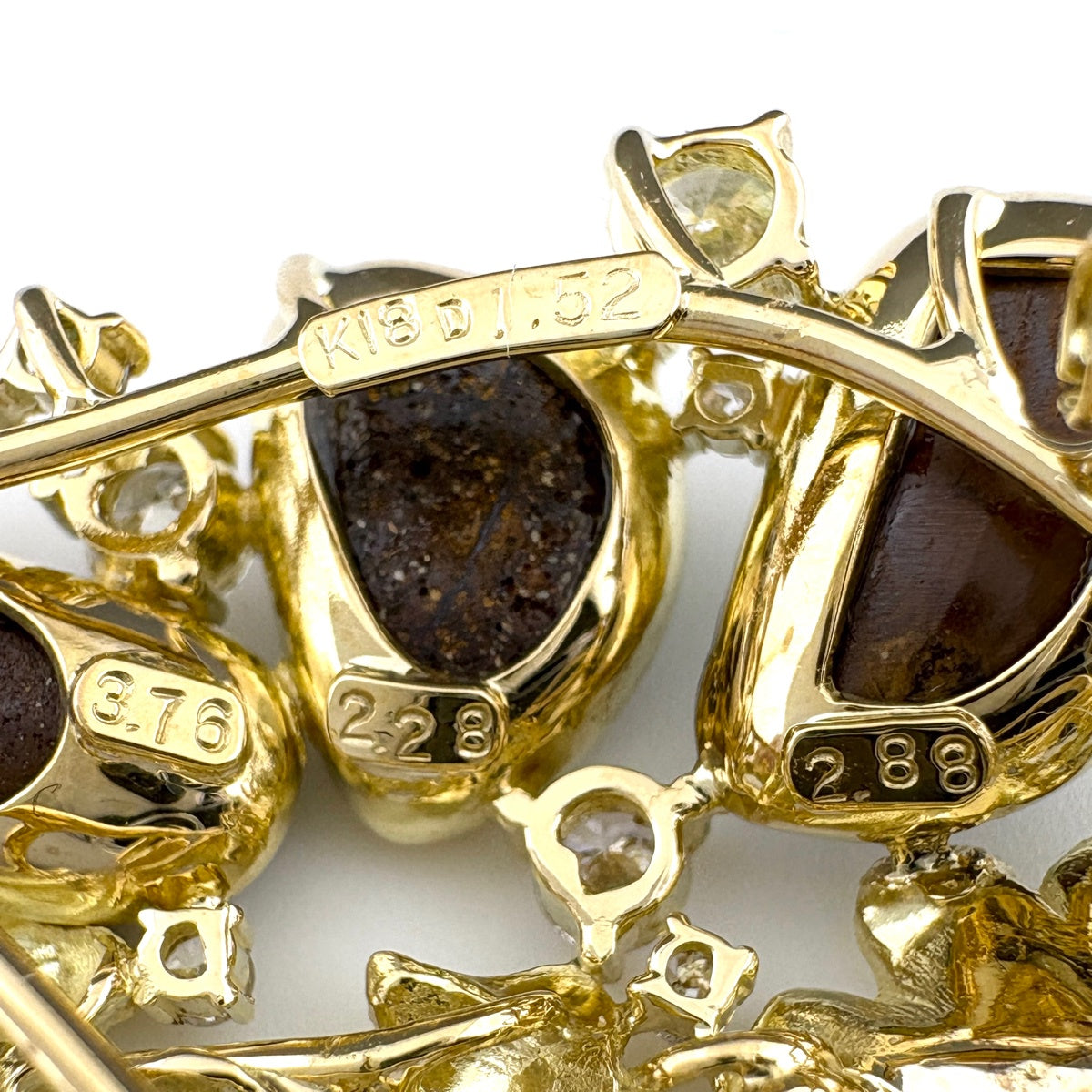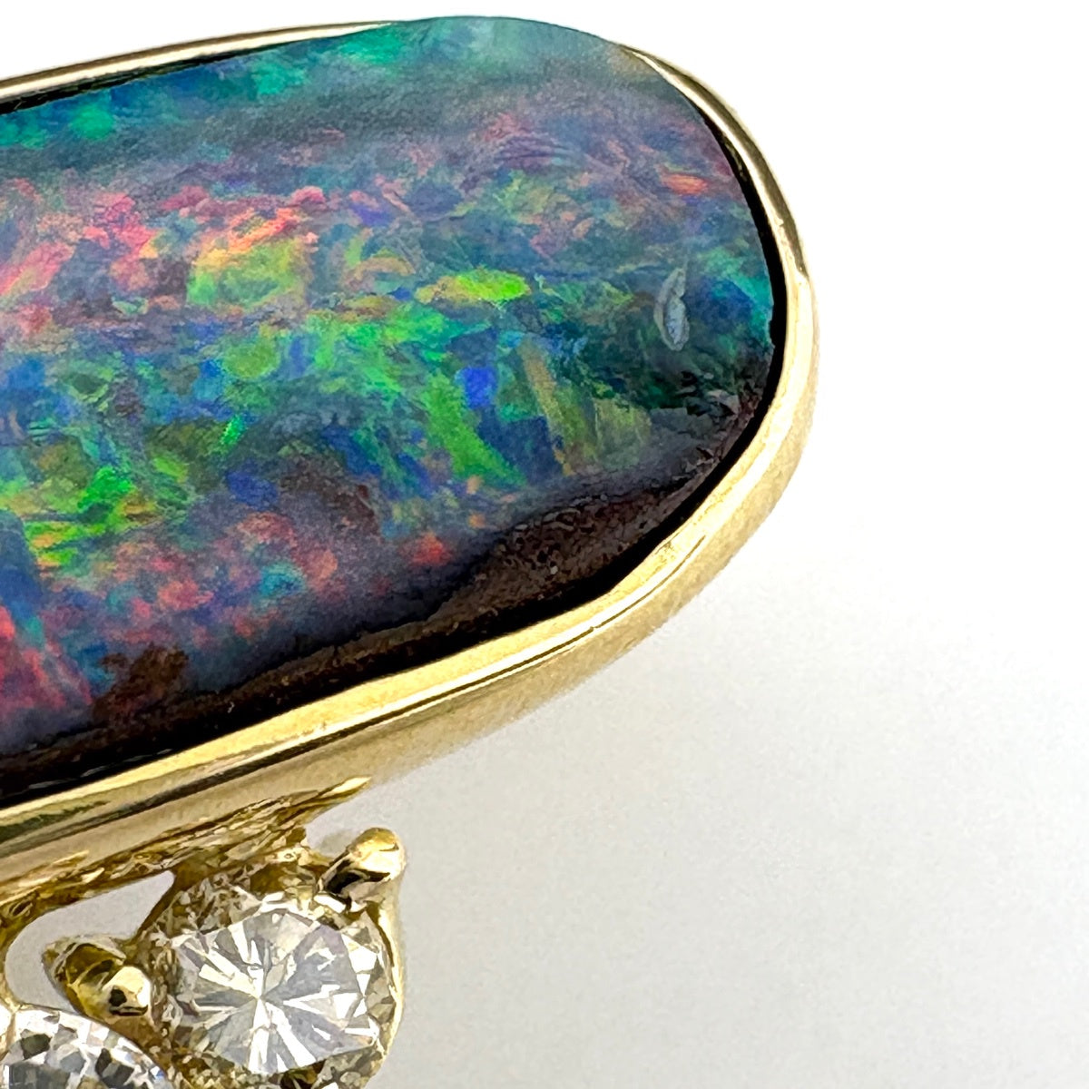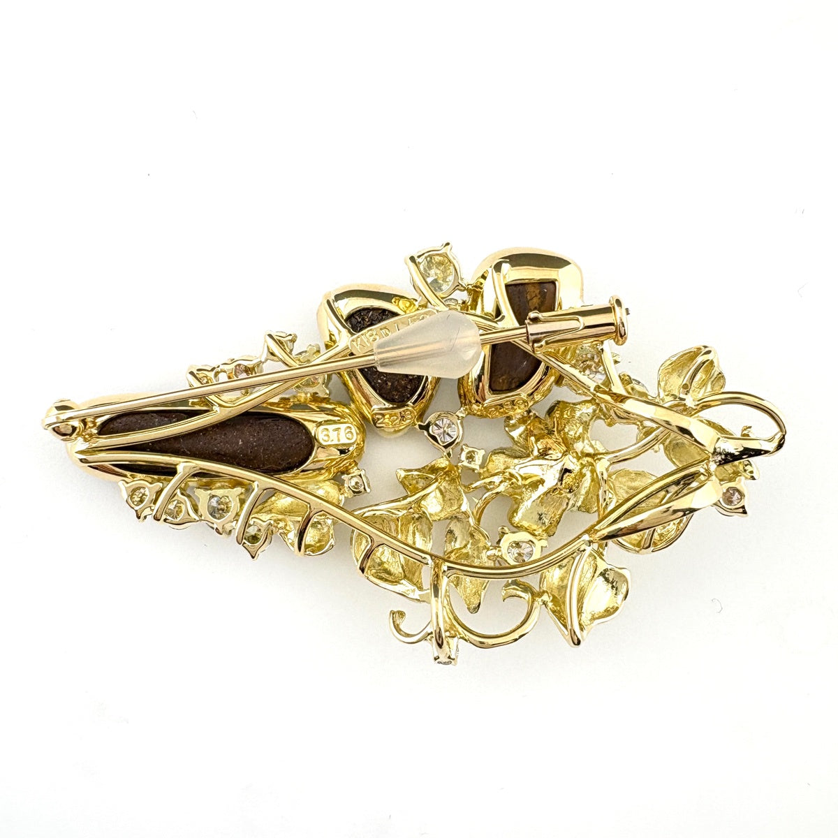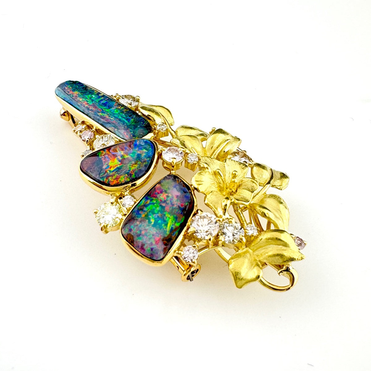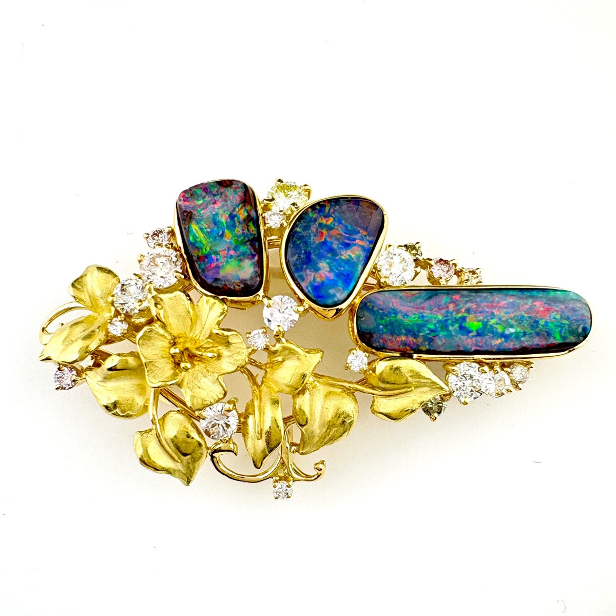 フラワーモチーフ デザインブローチ YG イエローゴールド ボルダーオパール メレダイヤ 花 ブローチ K18 ボルダーオパール ダイヤモンド レディース ノンブランドジュエリー 【中古】nbjwl