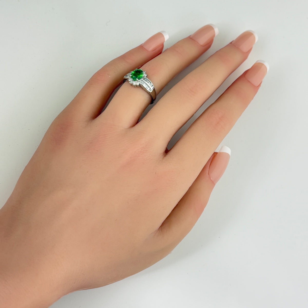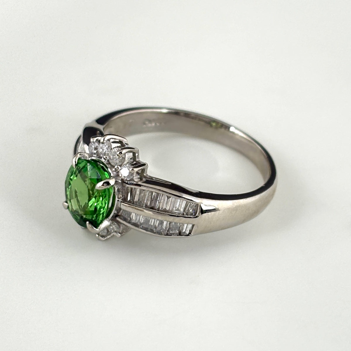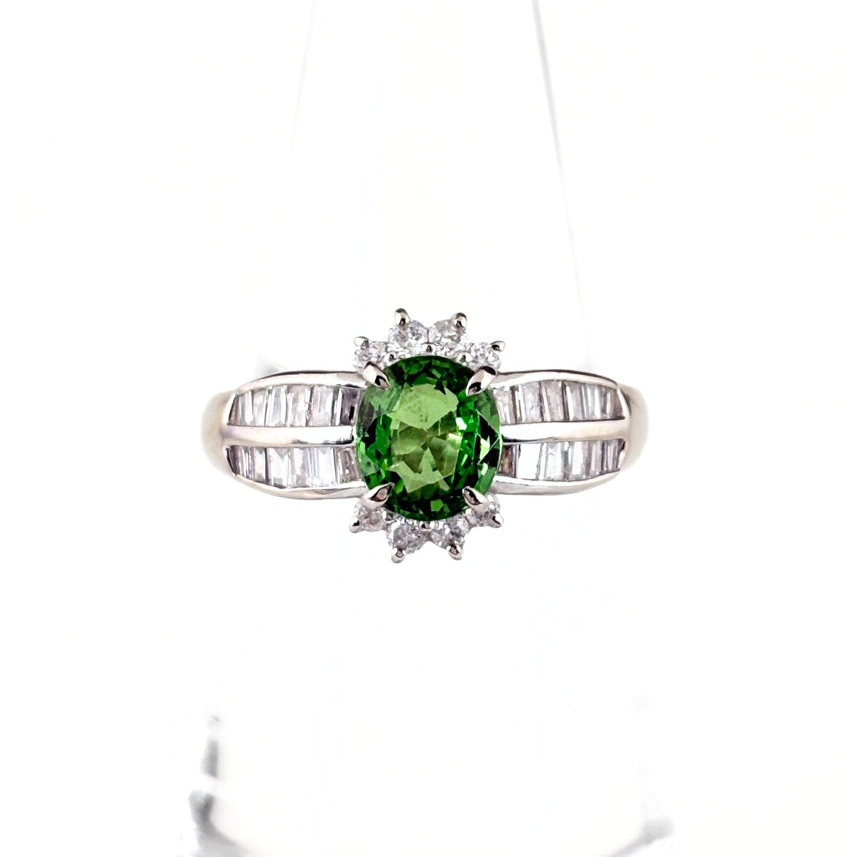 グリーングロッシュラーガーネット デザインリング プラチナ 指輪 メレダイヤ リング 12号 Pt900 ダイヤモンド グリーングロッシュラーガーネット レディース ノンブランドジュエリー 【中古】nbjwl