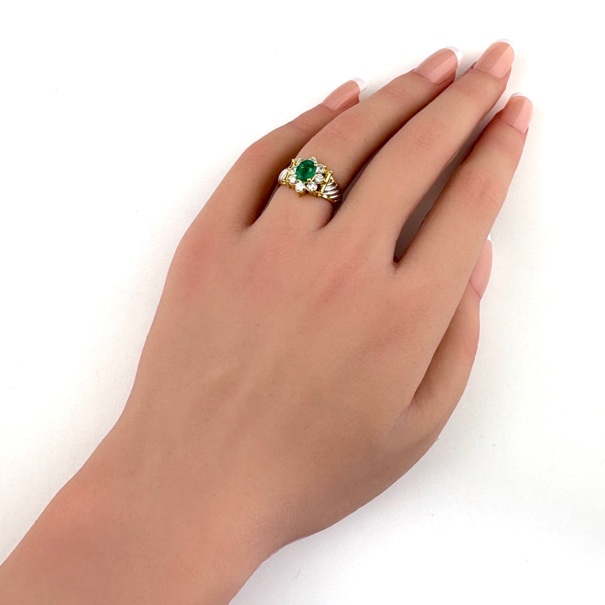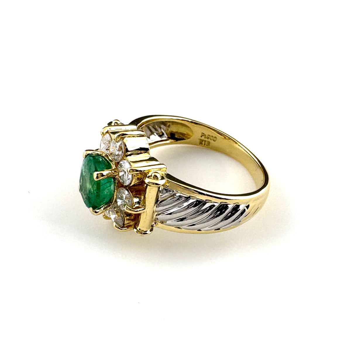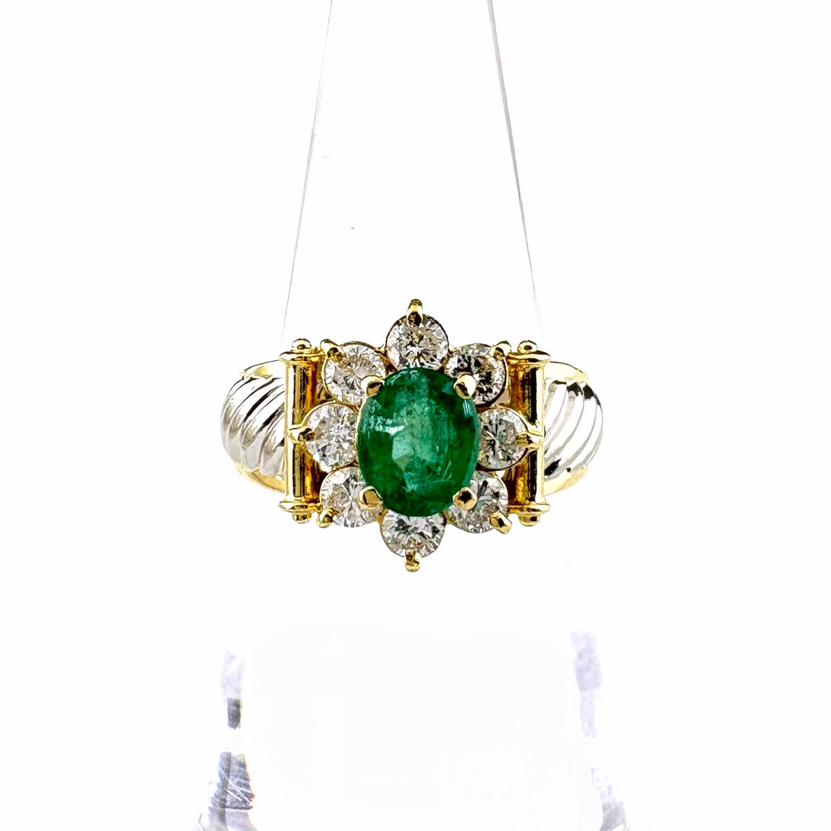 エメラルド デザインリング YG イエローゴールド プラチナ 指輪 メレダイヤ リング 9号 K18 Pt900 エメラルド レディース ノンブランドジュエリー 【中古】nbjwl