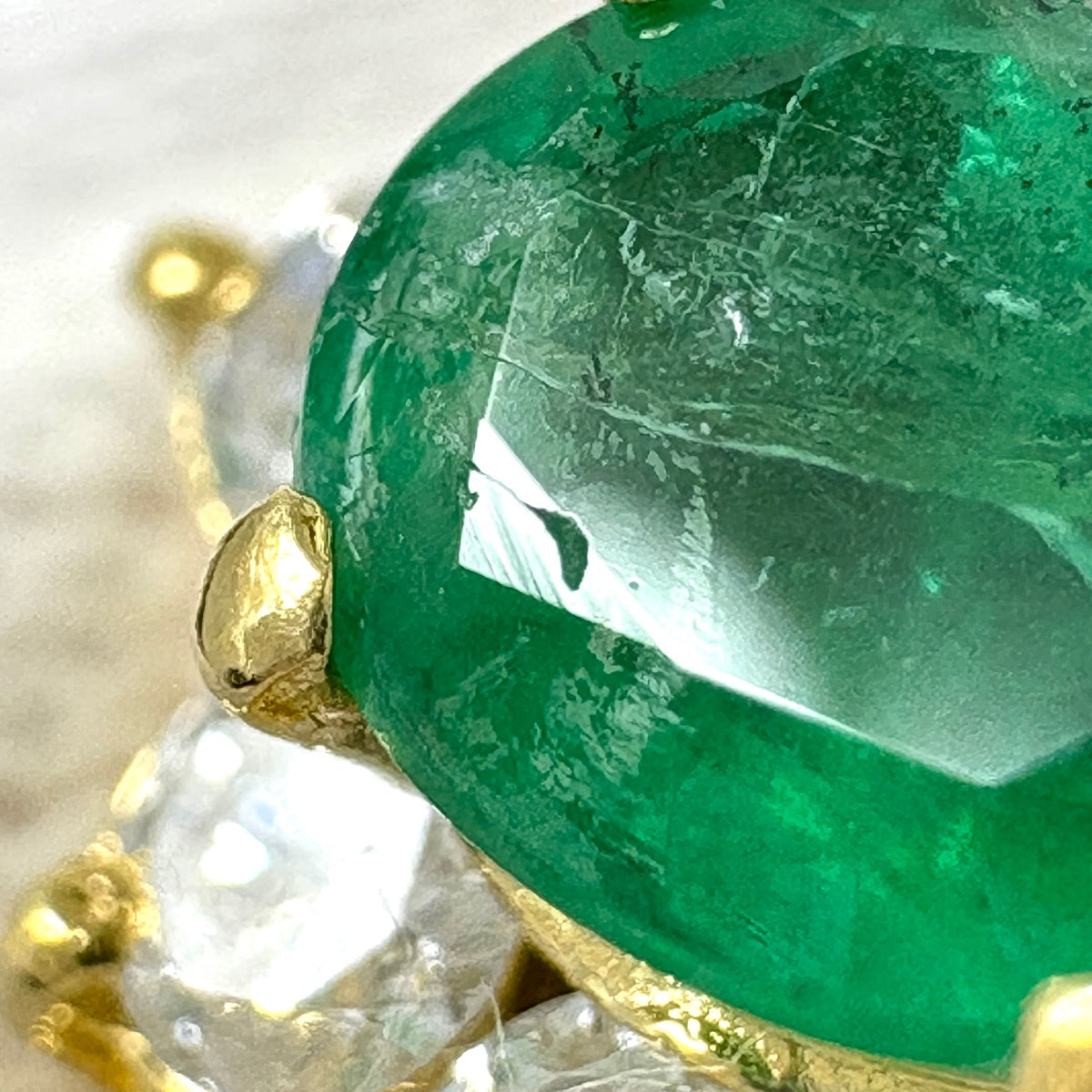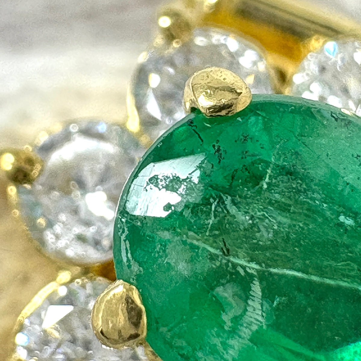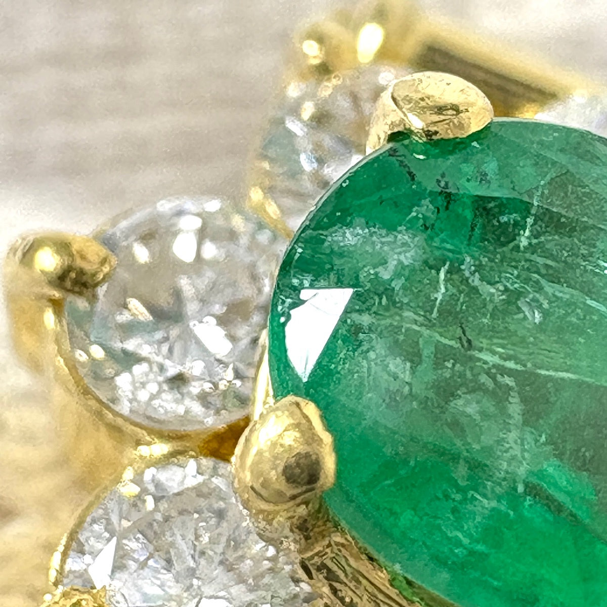 エメラルド デザインリング YG イエローゴールド プラチナ 指輪 メレダイヤ リング 9号 K18 Pt900 エメラルド レディース ノンブランドジュエリー 【中古】nbjwl