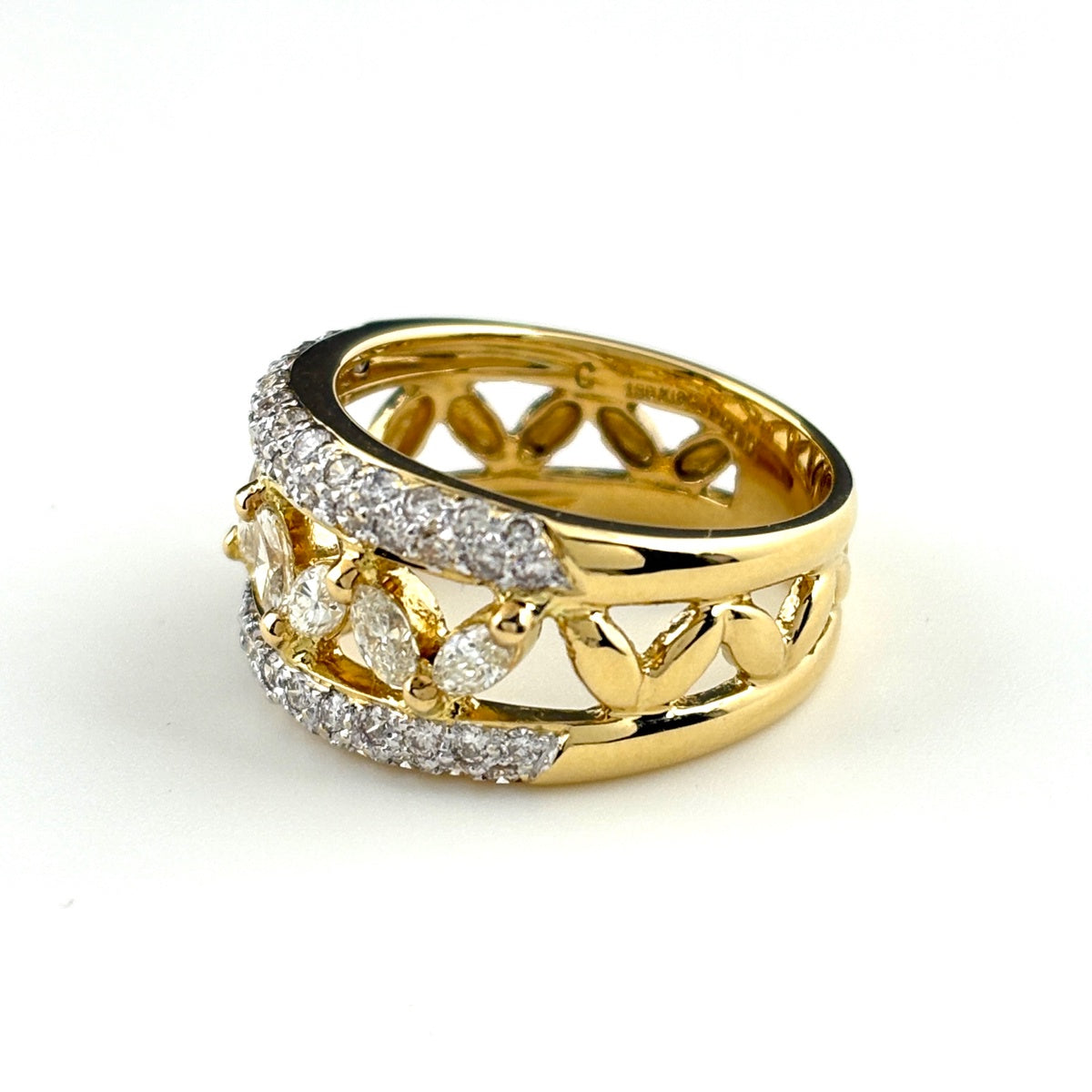メレダイヤ デザインリング YG イエローゴールド 指輪 リング 12号 K18 ダイヤモンド レディース ノンブランドジュエリー 【中古】nbjwl