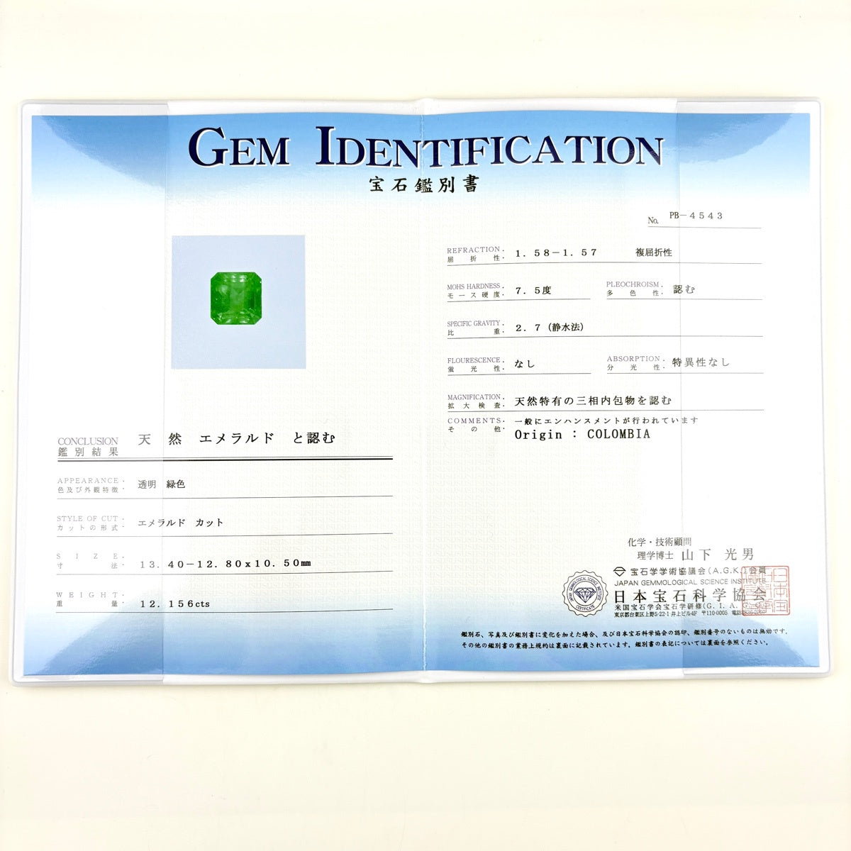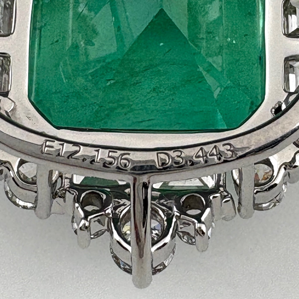 コメント エメラルド:12.156ct、メレダイヤ:3.443ct