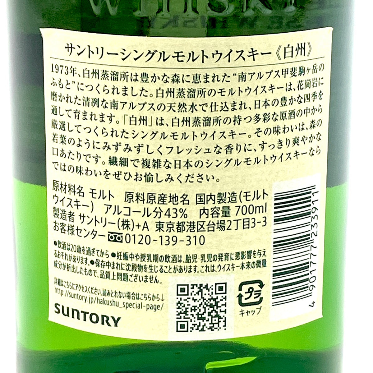 【東京都内限定お届け】 サントリー SUNTORY 白州 シングルモルト ジャパニーズ 700ml 国産ウイスキー 酒 【古酒】liqbb