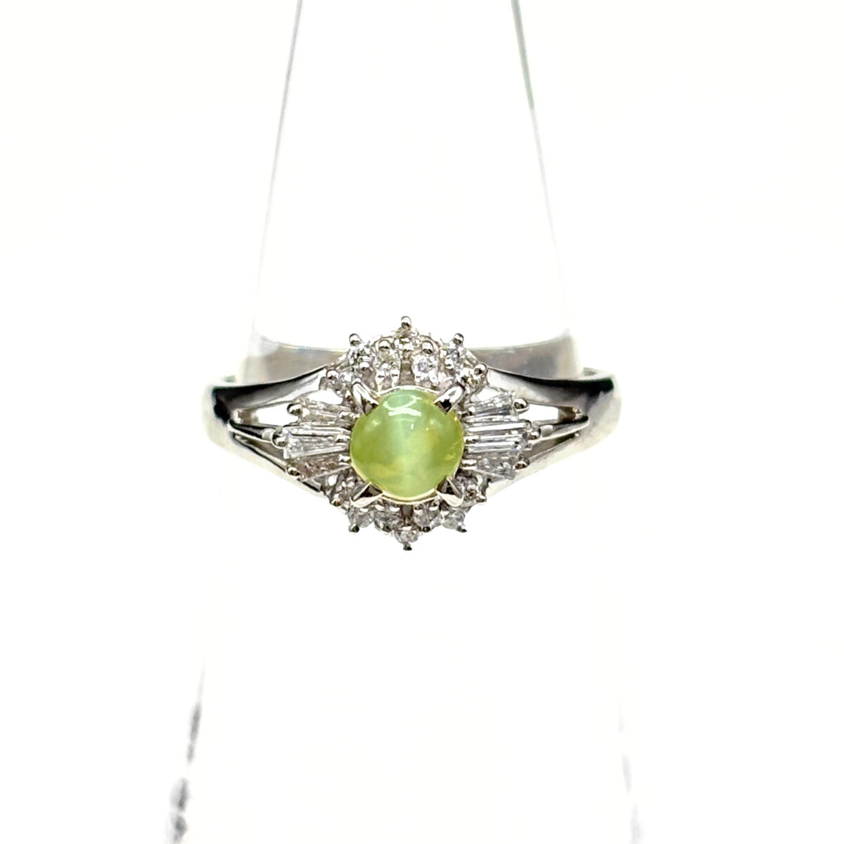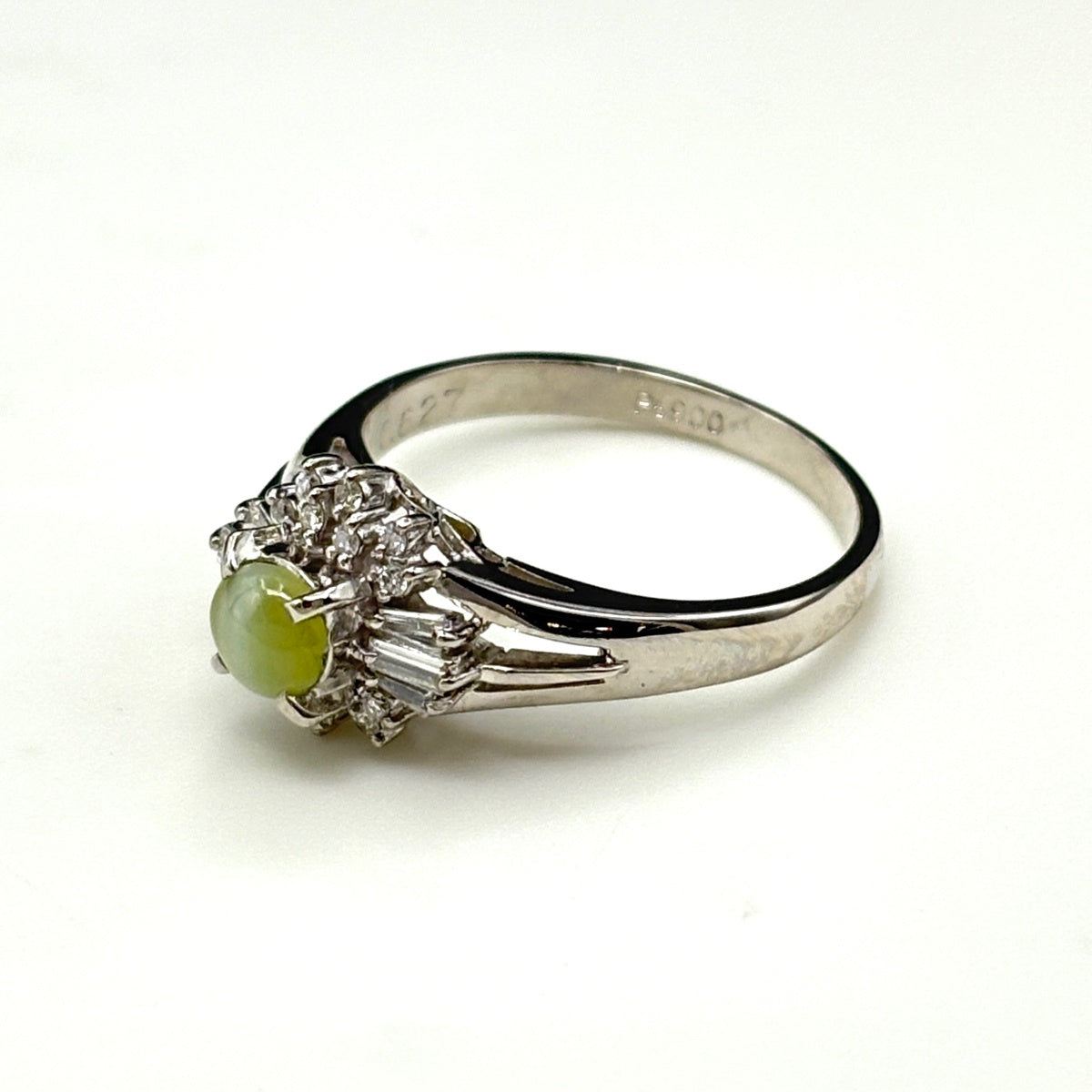 クリソベリルキャッツアイ デザインリング プラチナ メレダイヤ 指輪 リング 11.5号 Pt900 クリソベリルキャッツアイ ダイヤモンド レディース ノンブランドジュエリー 【中古】nbjwl
