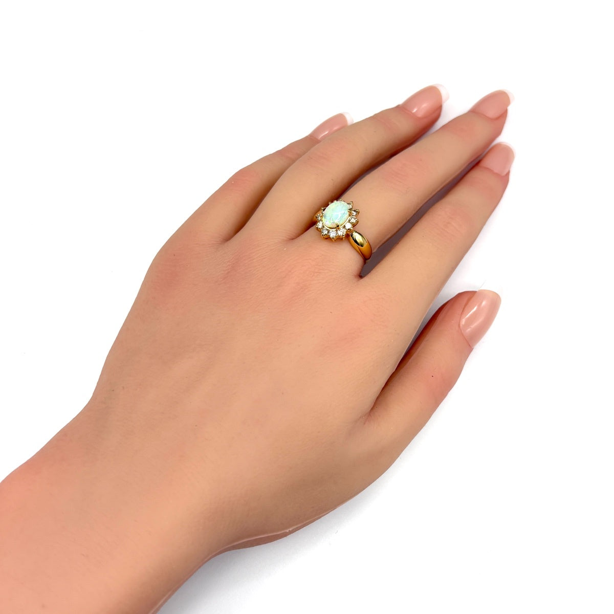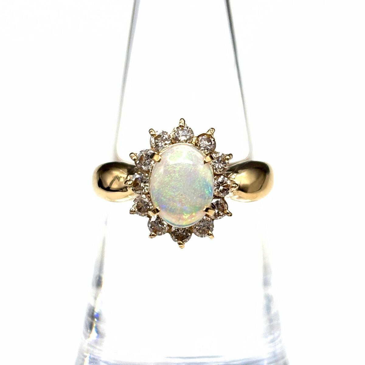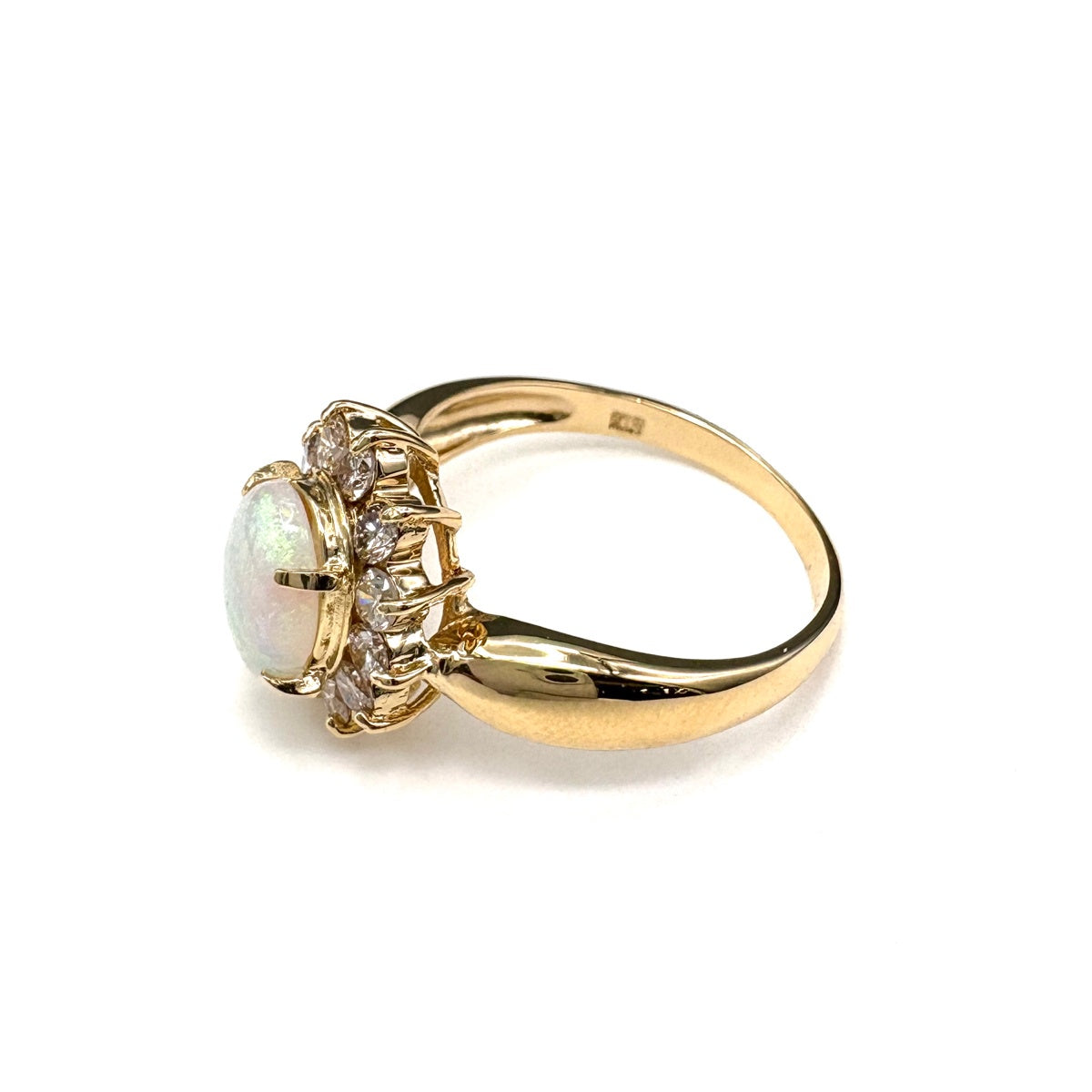 オパール デザインリング YG イエローゴールド 指輪 メレダイヤ リング 13号 K18 オパール ダイヤモンド レディース ノンブランドジュエリー 【中古】nbjwl