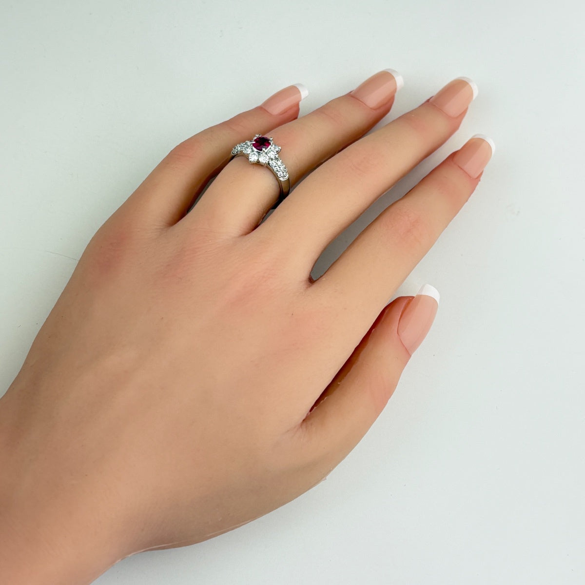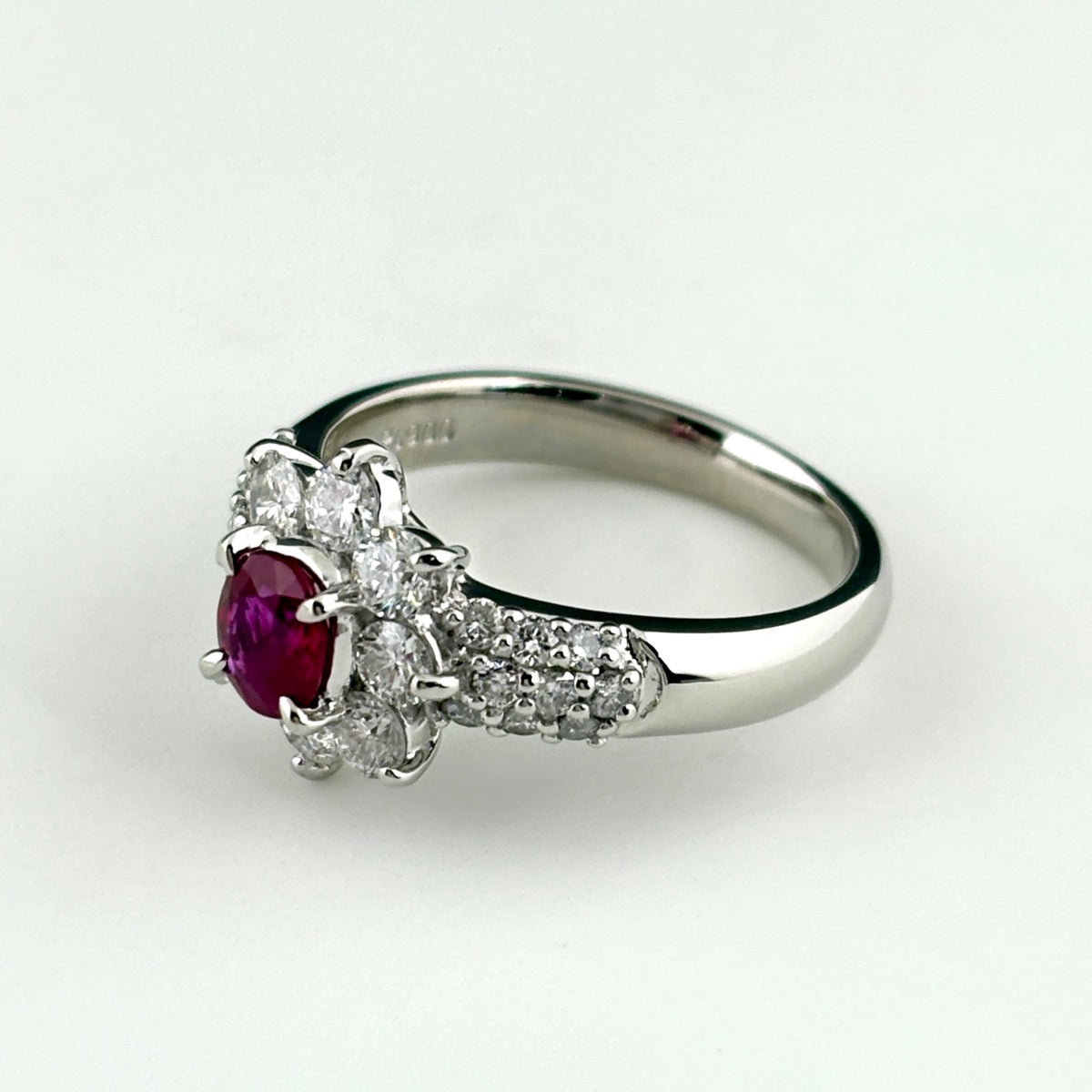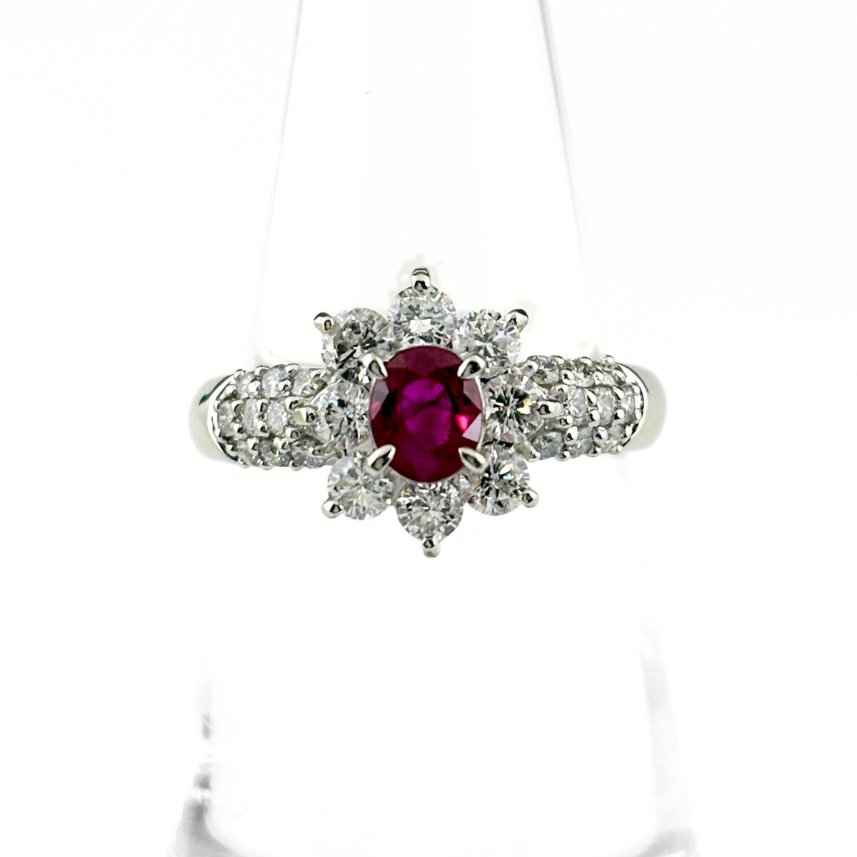 フラワーモチーフ デザインリング プラチナ 指輪 ルビー メレダイヤ リング 12号 Pt900 ルビー ダイヤモンド レディース ノンブランドジュエリー 【中古】nbjwl