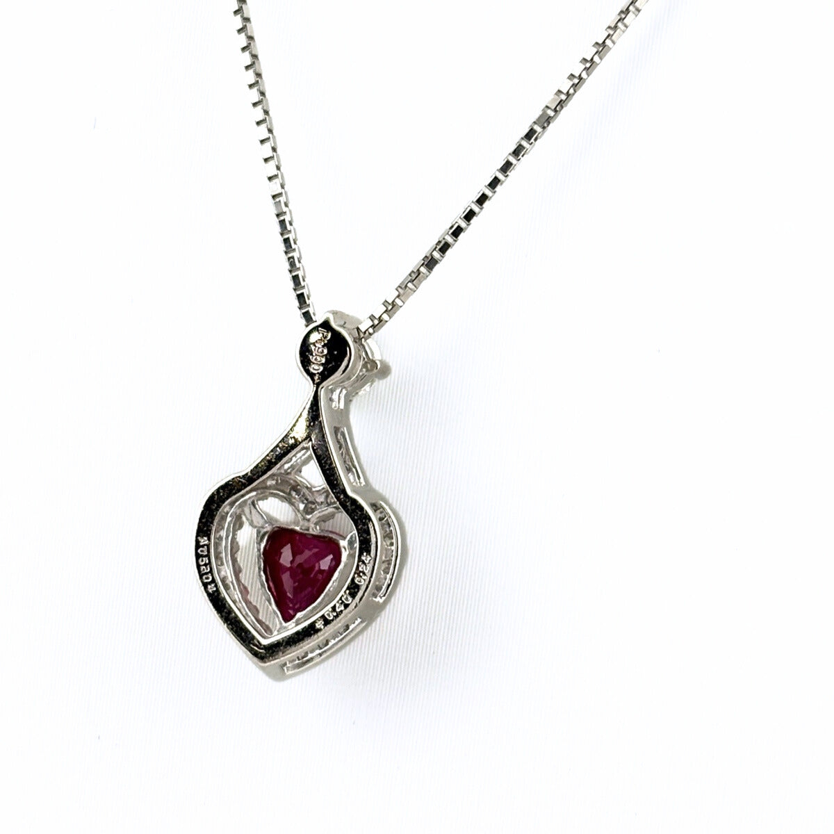 ハートモチーフ デザインネックレス プラチナ ペンダント メレダイヤ ダイヤモンド ネックレス Pt900 Pt850 ルビー レディース ノンブランドジュエリー 【中古】nbjwl