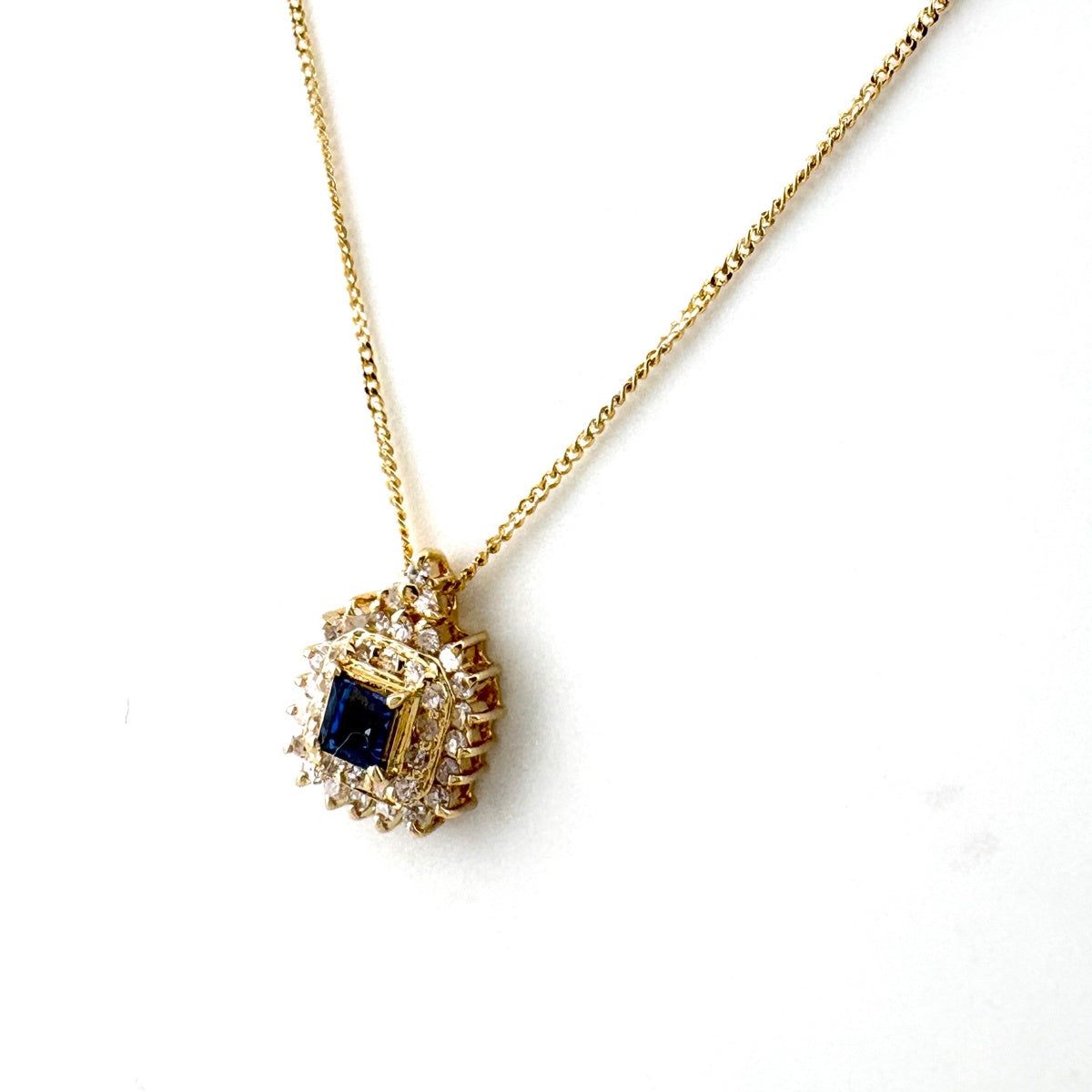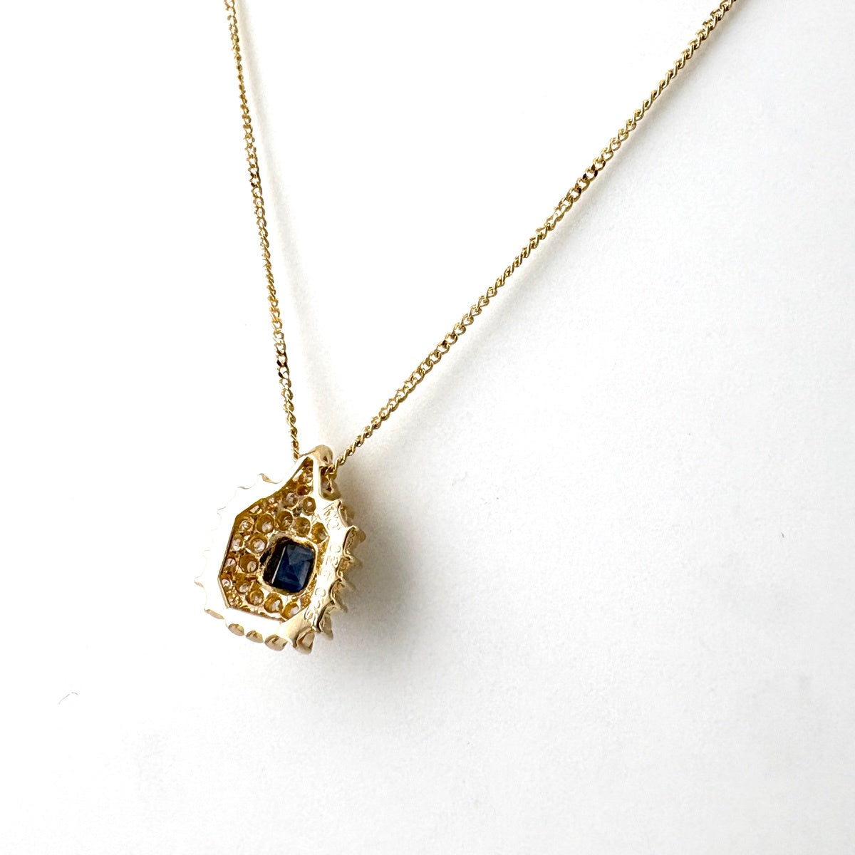 サファイア デザインネックレス YG イエローゴールド プラチナ メレダイヤ ネックレス K18 サファイア ダイヤモンド レディース ノンブランドジュエリー 【中古】nbjwl