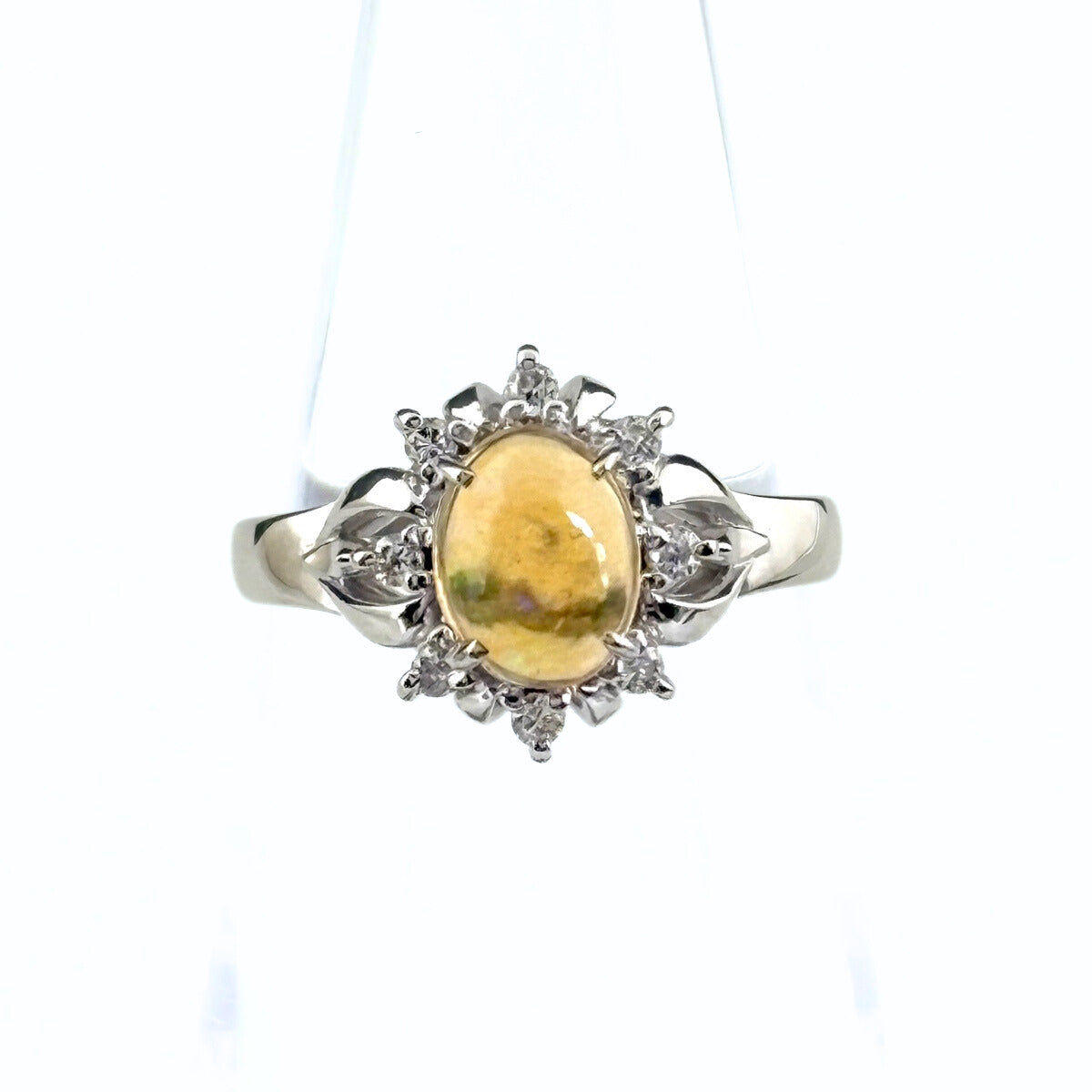 ファイアオパール デザインリング プラチナ 指輪 メレダイヤ リング 12号 Pt850 ダイヤモンド ファイアオパール レディース ノンブランドジュエリー 【中古】nbjwl
