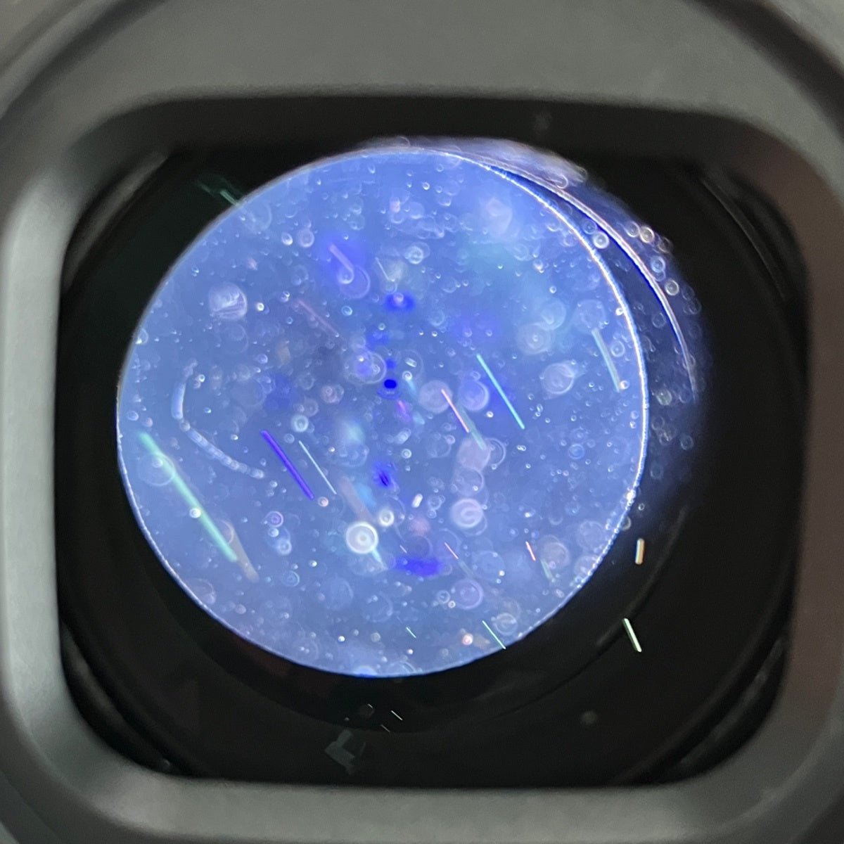 レンズ内部にクモリやカビ、キズ、小ゴミやホコリの混入、前の表面にキズがあります。