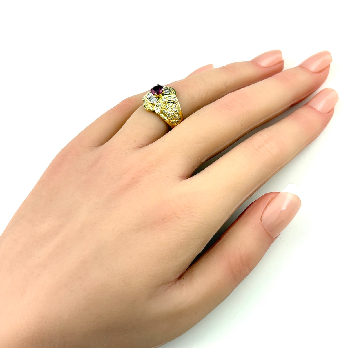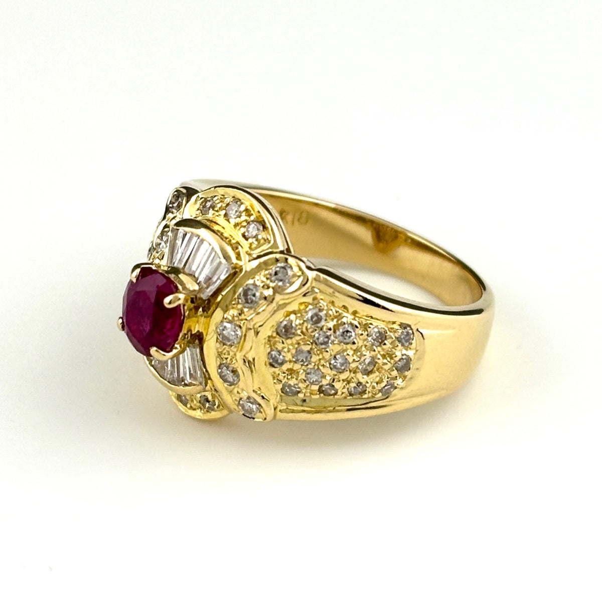 ルビー デザインリング YG イエローゴールド 指輪 メレダイヤ リング 11号 K18 ルビー ダイヤモンド レディース ノンブランドジュエリー 【中古】nbjwl