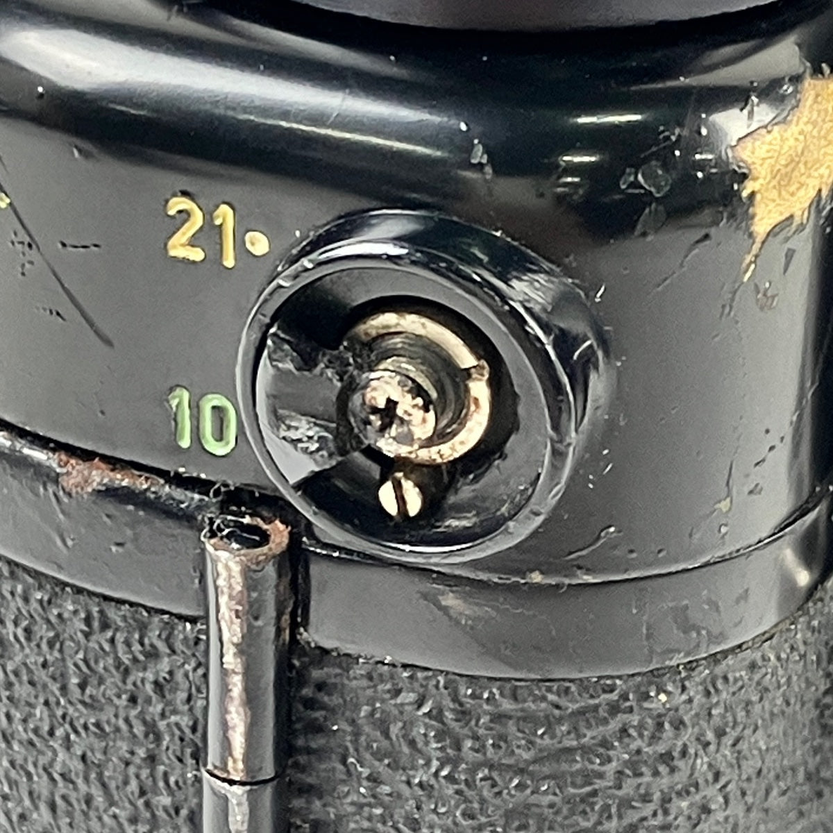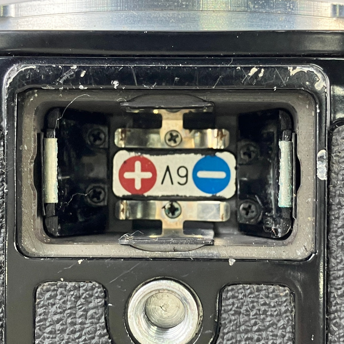 スレやキズ、汚れや塗装剥がれ、錆、フイルム室やファインダーにモルト劣化、電池室に欠品、枚数切り替えダイヤルに破損があります。