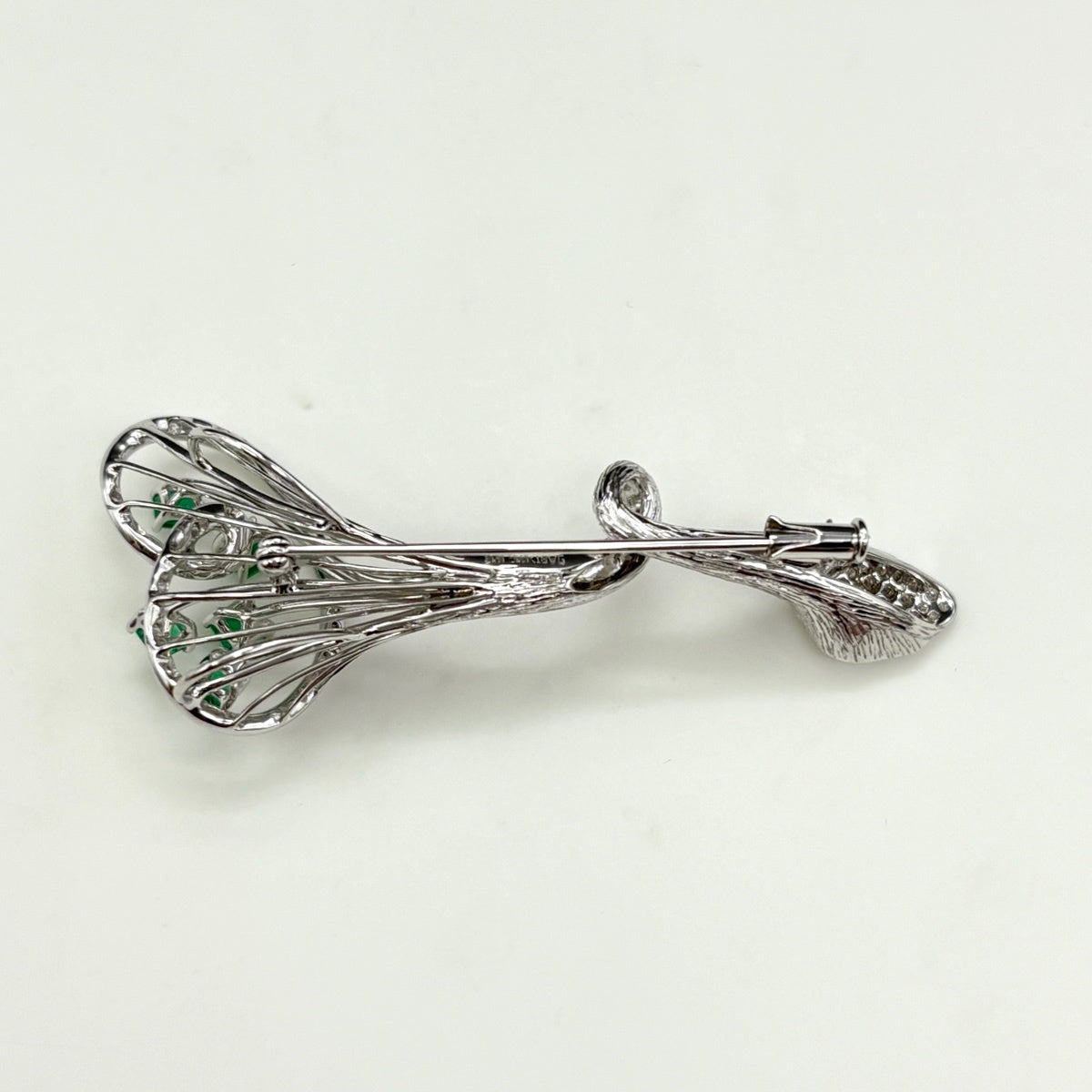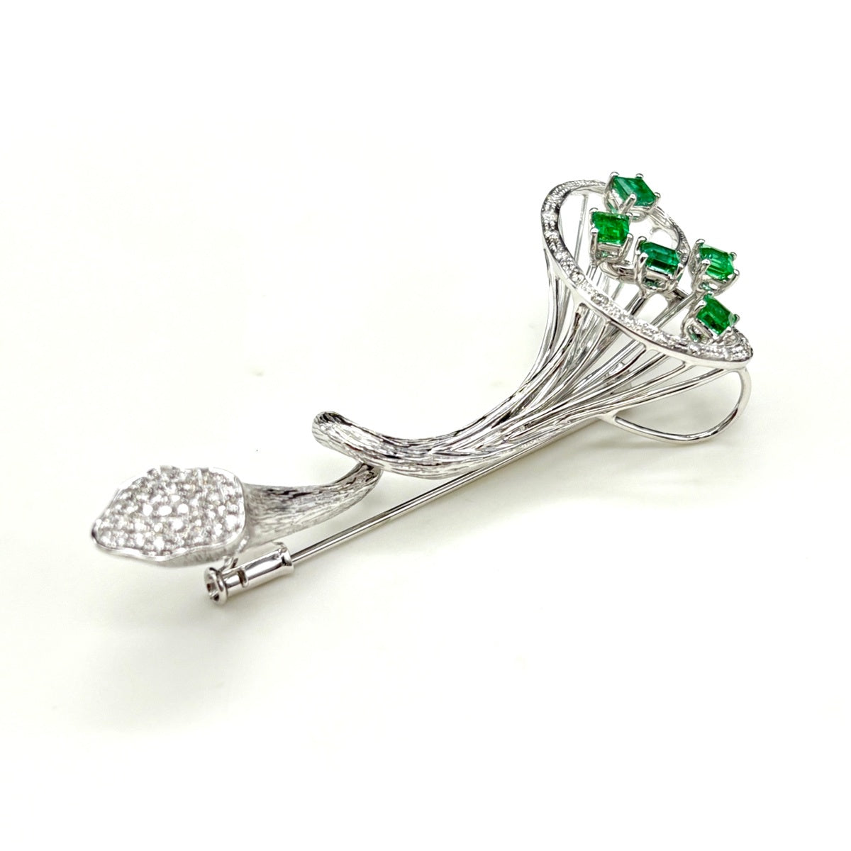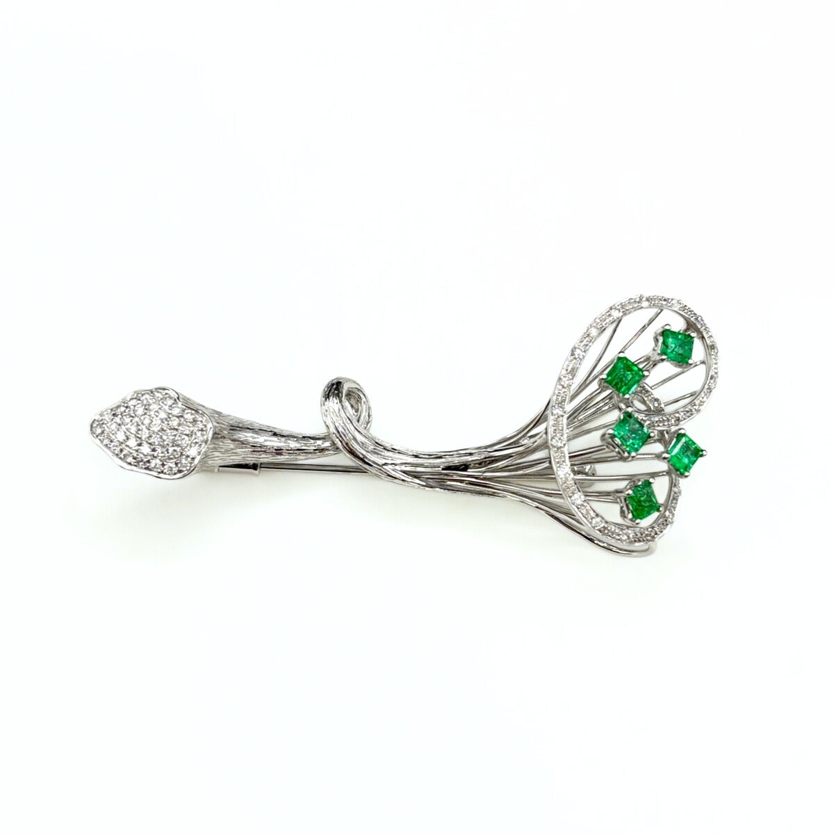 エメラルド デザインブローチ WG ホワイトゴールド メレダイヤ ブローチ K18 WG エメラルド レディース ノンブランドジュエリー 【中古】nbjwl