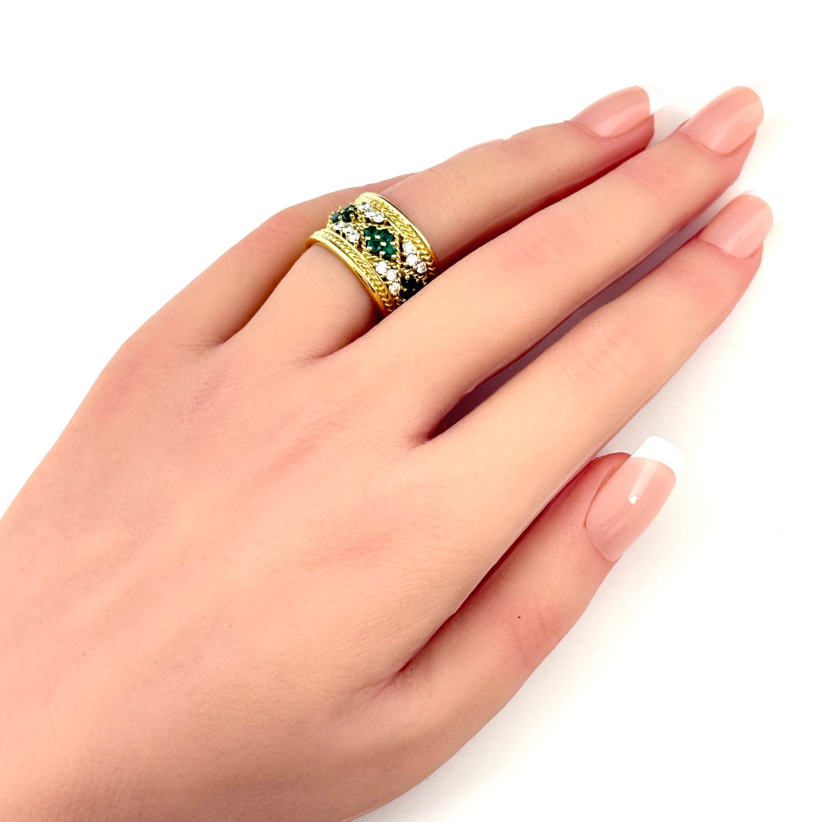中古品の為、若干のキズや汚れ、一部のエメラルドにキズや欠けがございます。