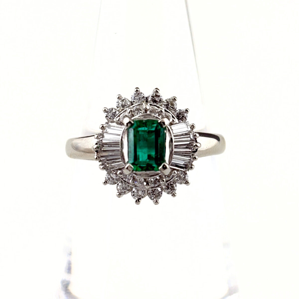 エメラルド リング 12号 Pt900 エメラルド ダイヤモンド レディース ノンブランドジュエリー 【中古】nbjwl