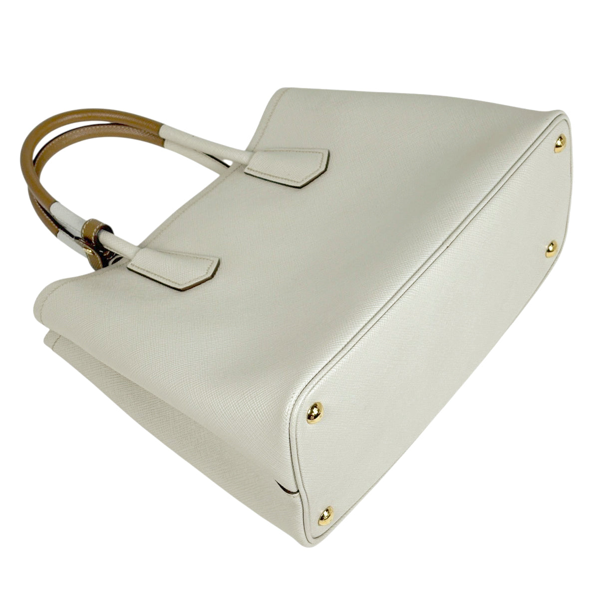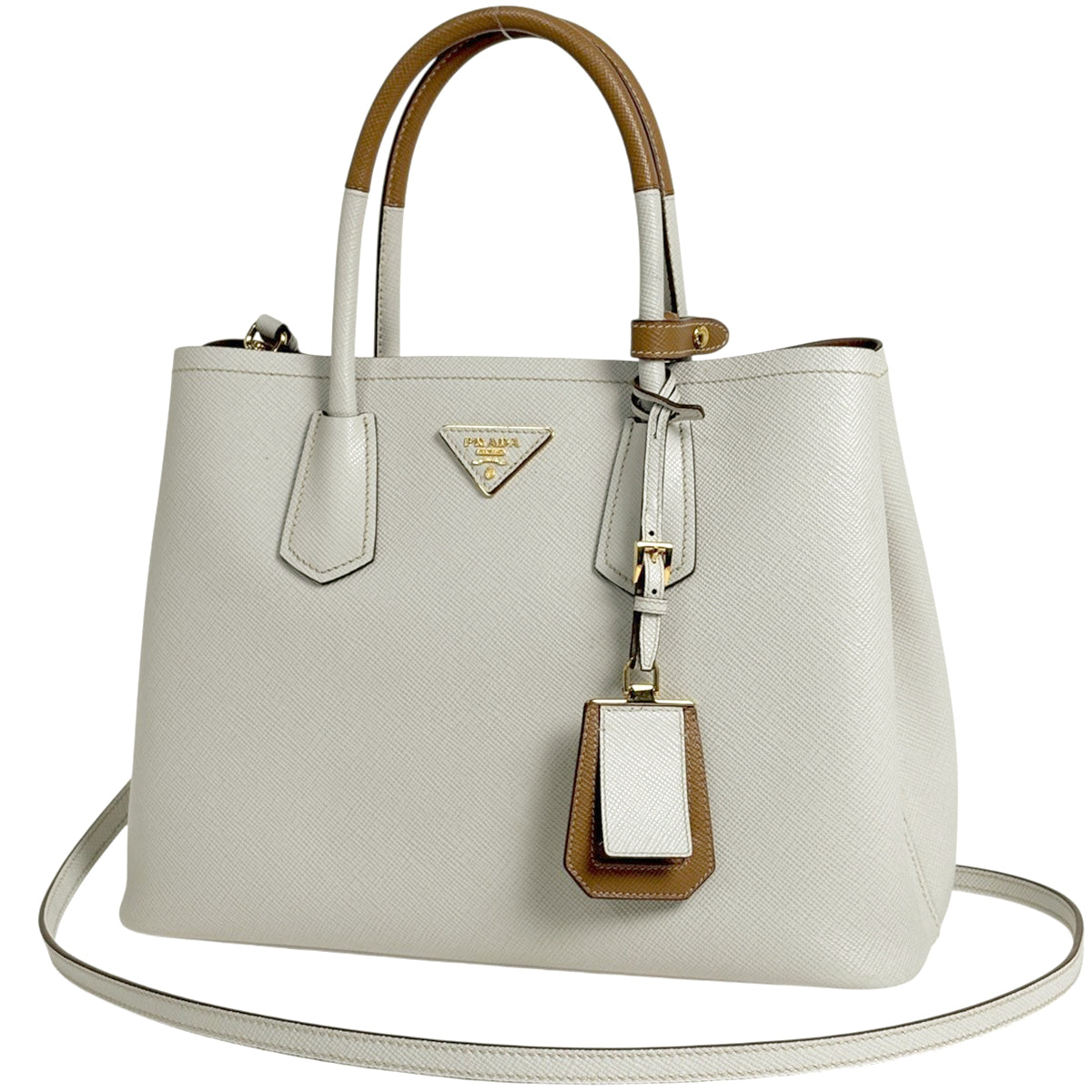 プラダ ドゥーブレ ミディアム ハンドバッグ 2WAY ショルダーバッグ ハンドバッグ サフィアーノレザー ホワイト ブラウン 1BG775 レディース ブランドバッグ・小物 【中古】brbag