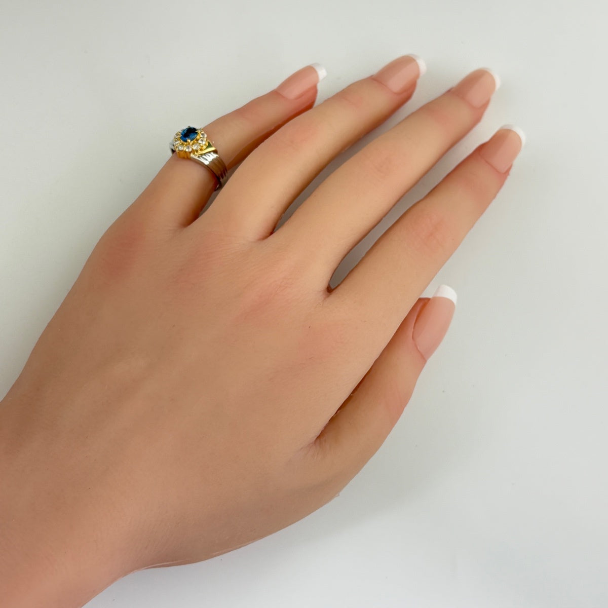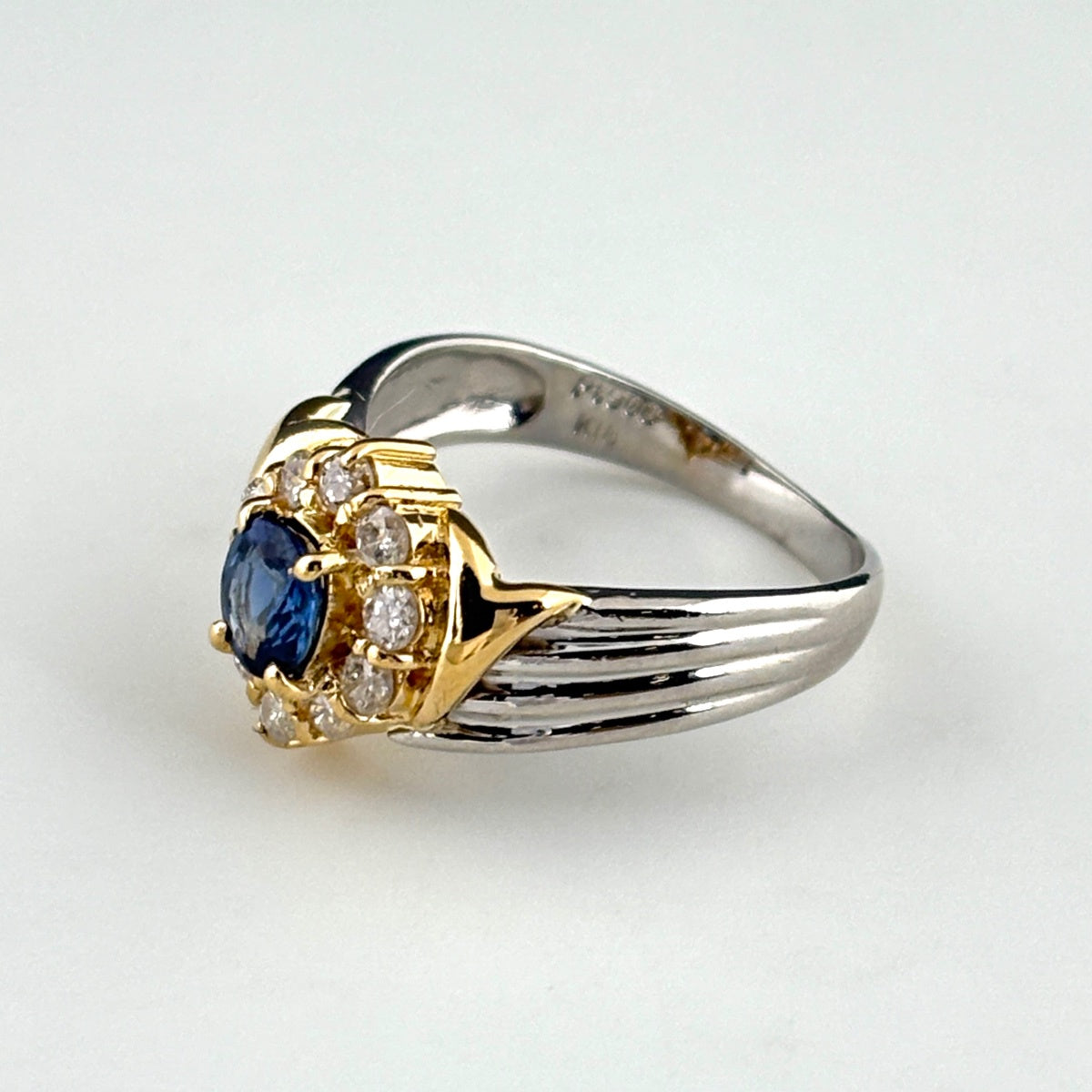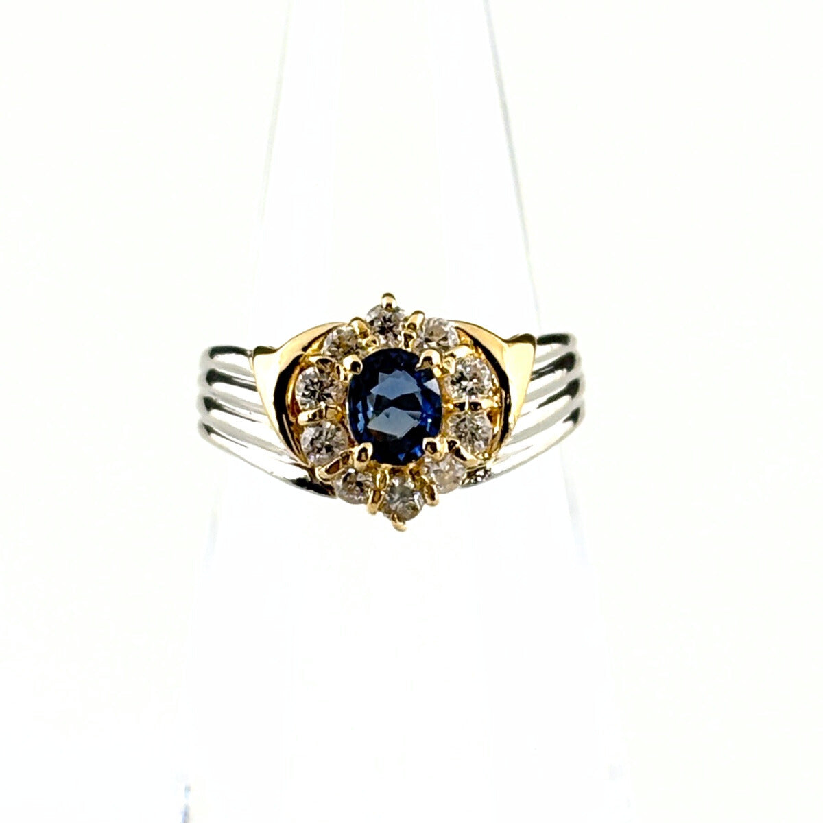 サファイア デザインリング YG イエローゴールド プラチナ メレダイヤ 指輪 リング 8号 Pt900 K18 サファイア レディース ノンブランドジュエリー 【中古】nbjwl