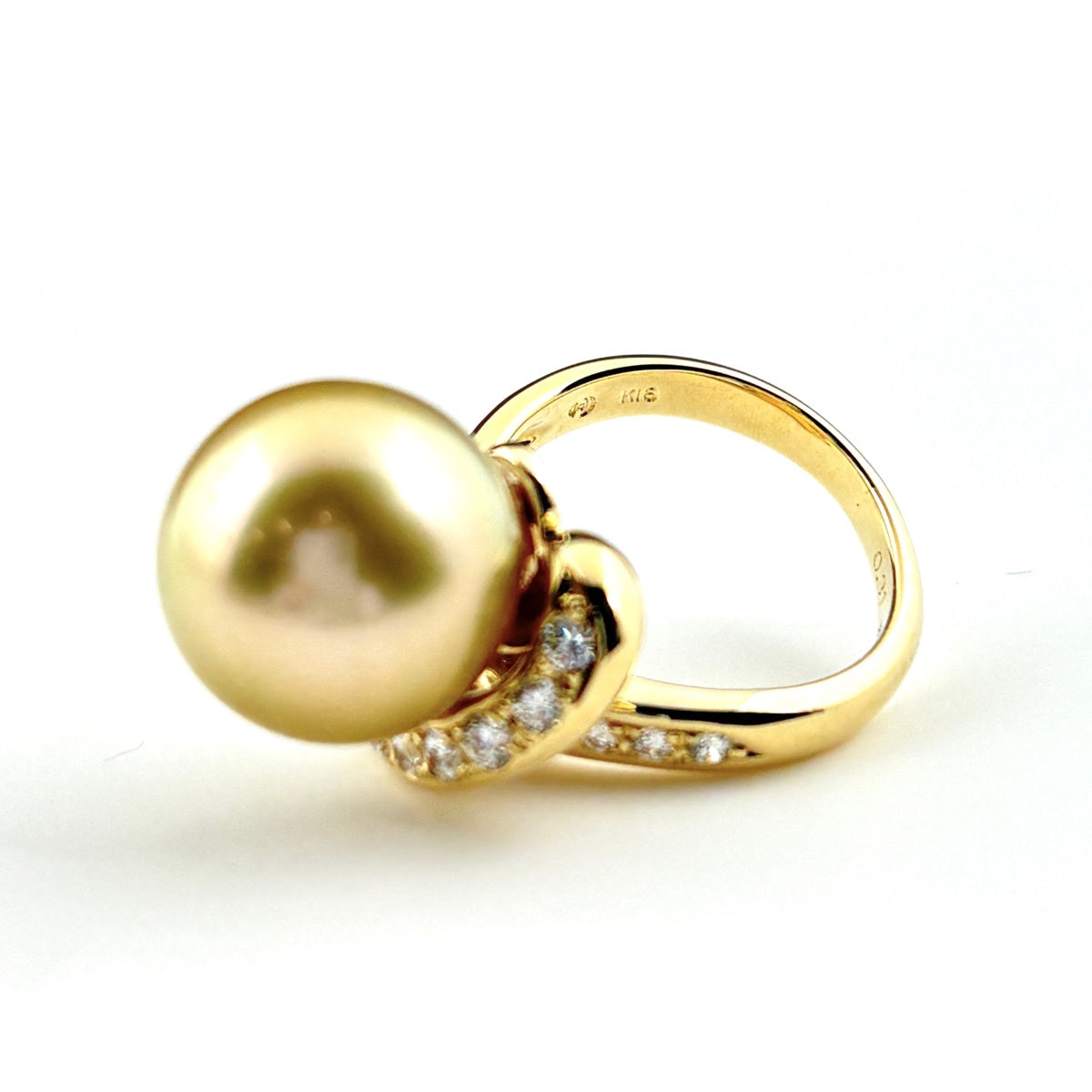 ライン YG イエローゴールド 指輪 メレダイヤ 真珠