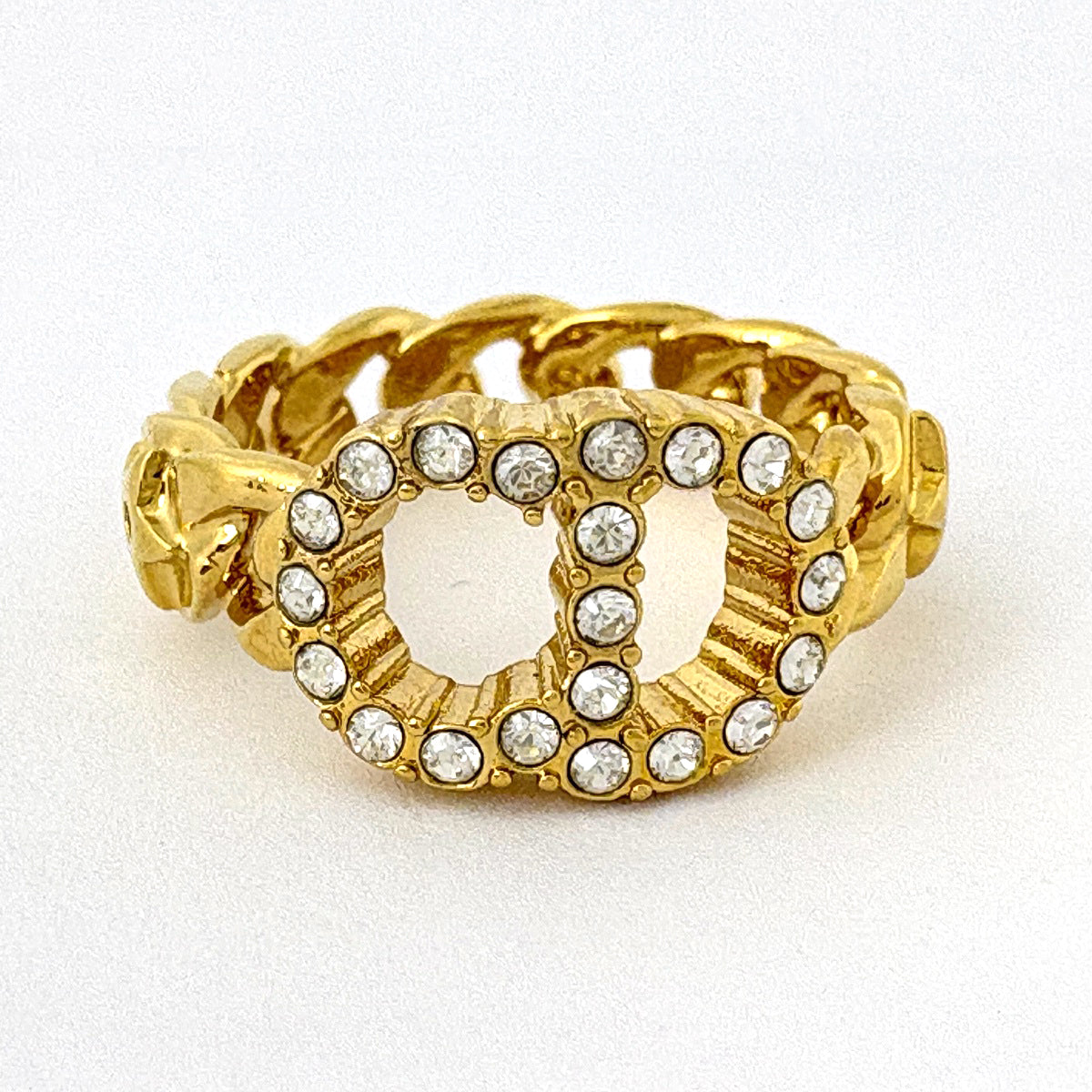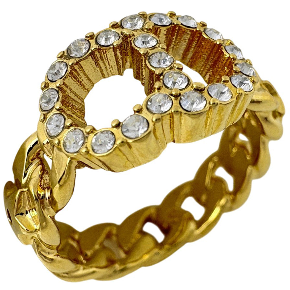 クリスチャンディオール ロゴ ラインストーン リング CD 指輪 リング 10.5号 GP ゴールド レディース ブランドアクセサリー 【中古】bracc