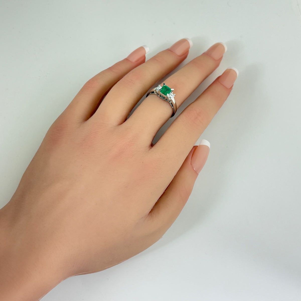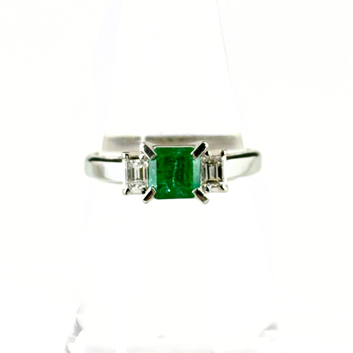 エメラルド デザインリング プラチナ 指輪 メレダイヤ リング 14号 Pt900 エメラルド ダイヤモンド レディース ノンブランドジュエリー 【中古】nbjwl