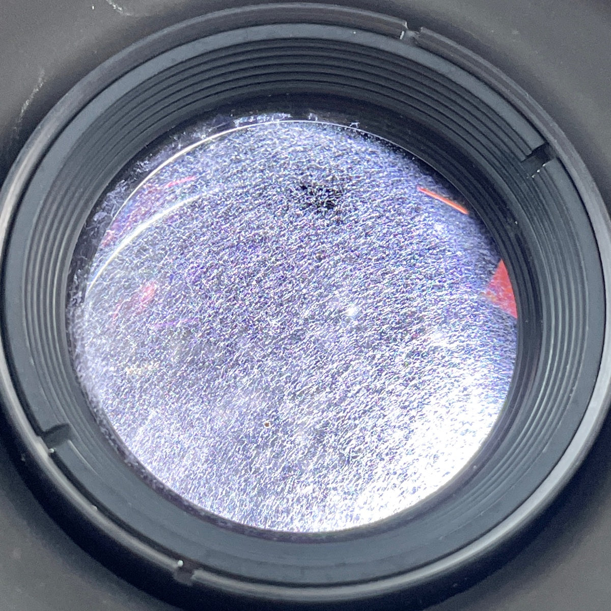 レンズ内部にカビやクモリ、小ゴミやホコリの混入、前の表面にキズがあります。