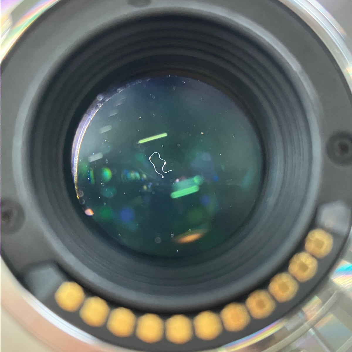 レンズ内部にクモリ、カビ、繊維やホコリの混入、後ろの表面にキズがあります。