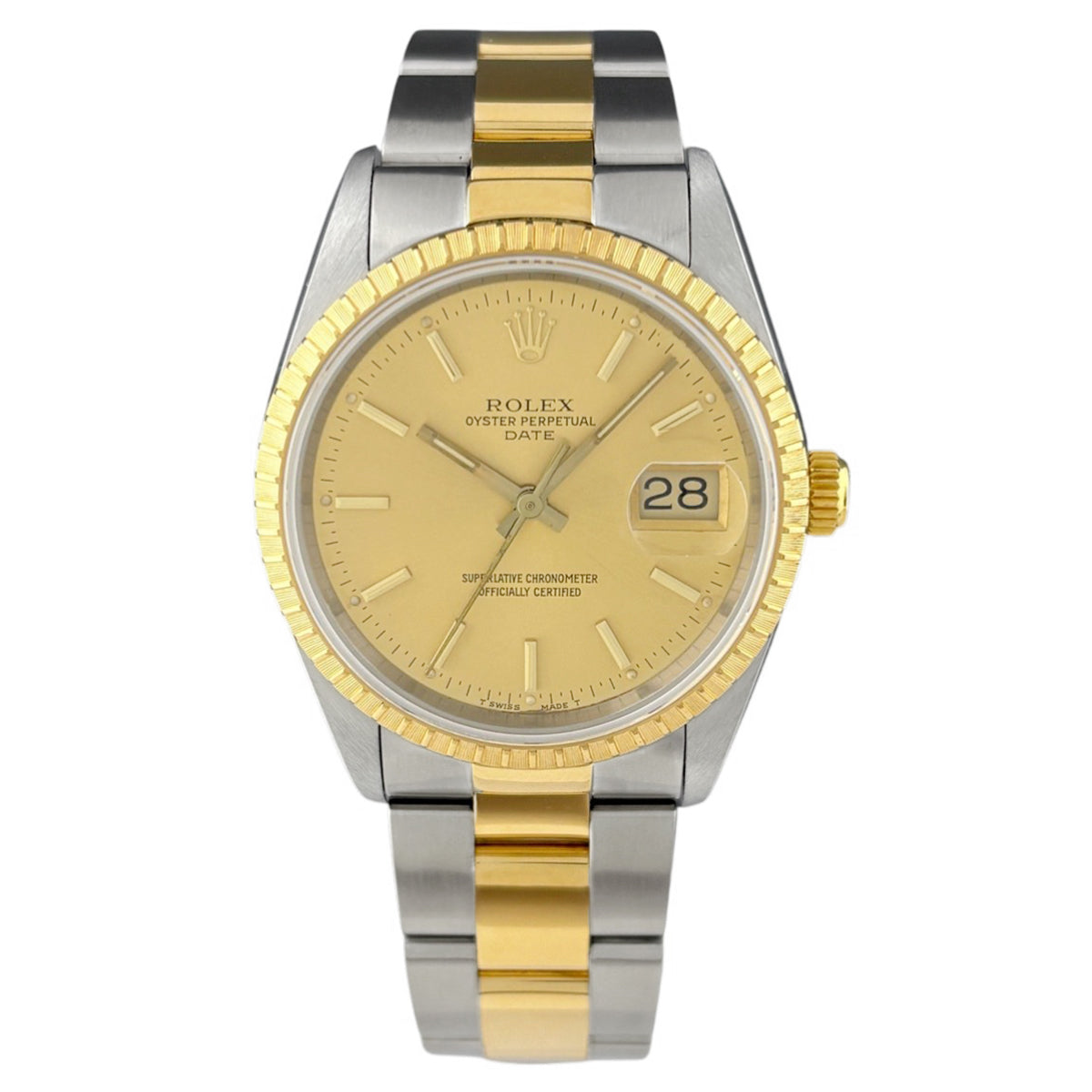 ロレックス オイスター パーペチュアル デイト 15223 腕時計 SS YG 自動巻き シャンパンゴールド メンズ 時計 【中古】【保証対象】 【OH済】wtcbb
