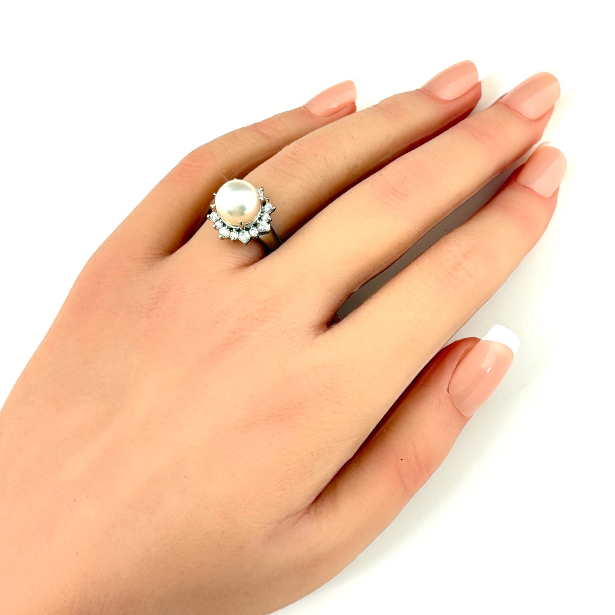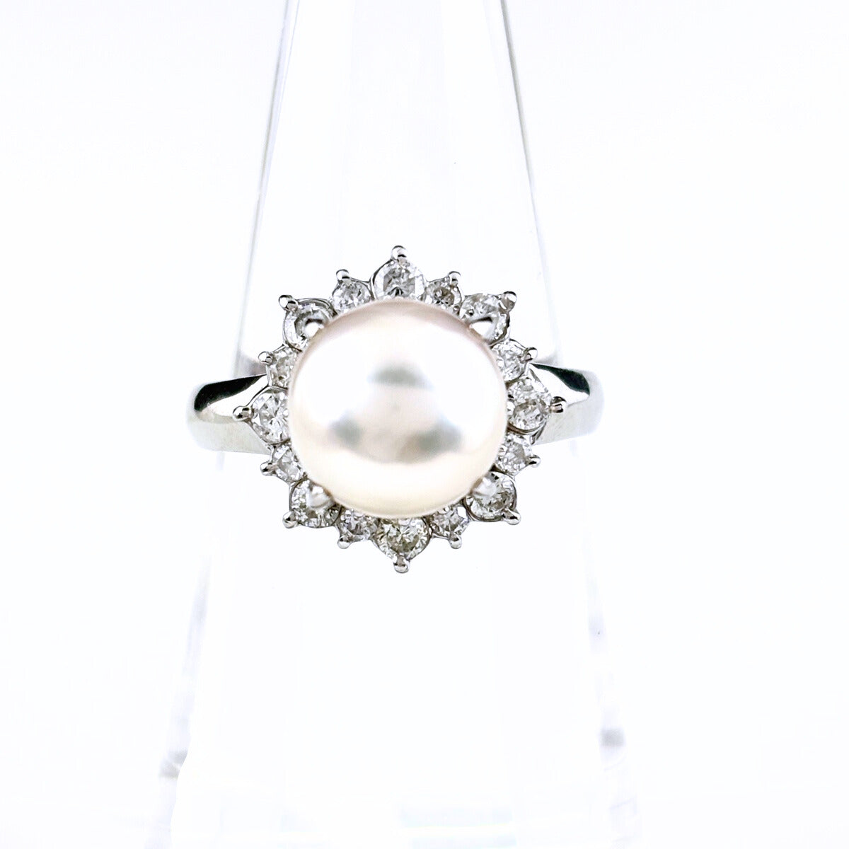 パール デザインリング プラチナ メレダイヤ 指輪 真珠 リング 14.5号 Pt900 ダイヤモンド レディース ノンブランドジュエリー 【中古】nbjwl