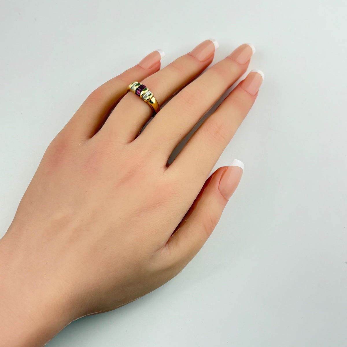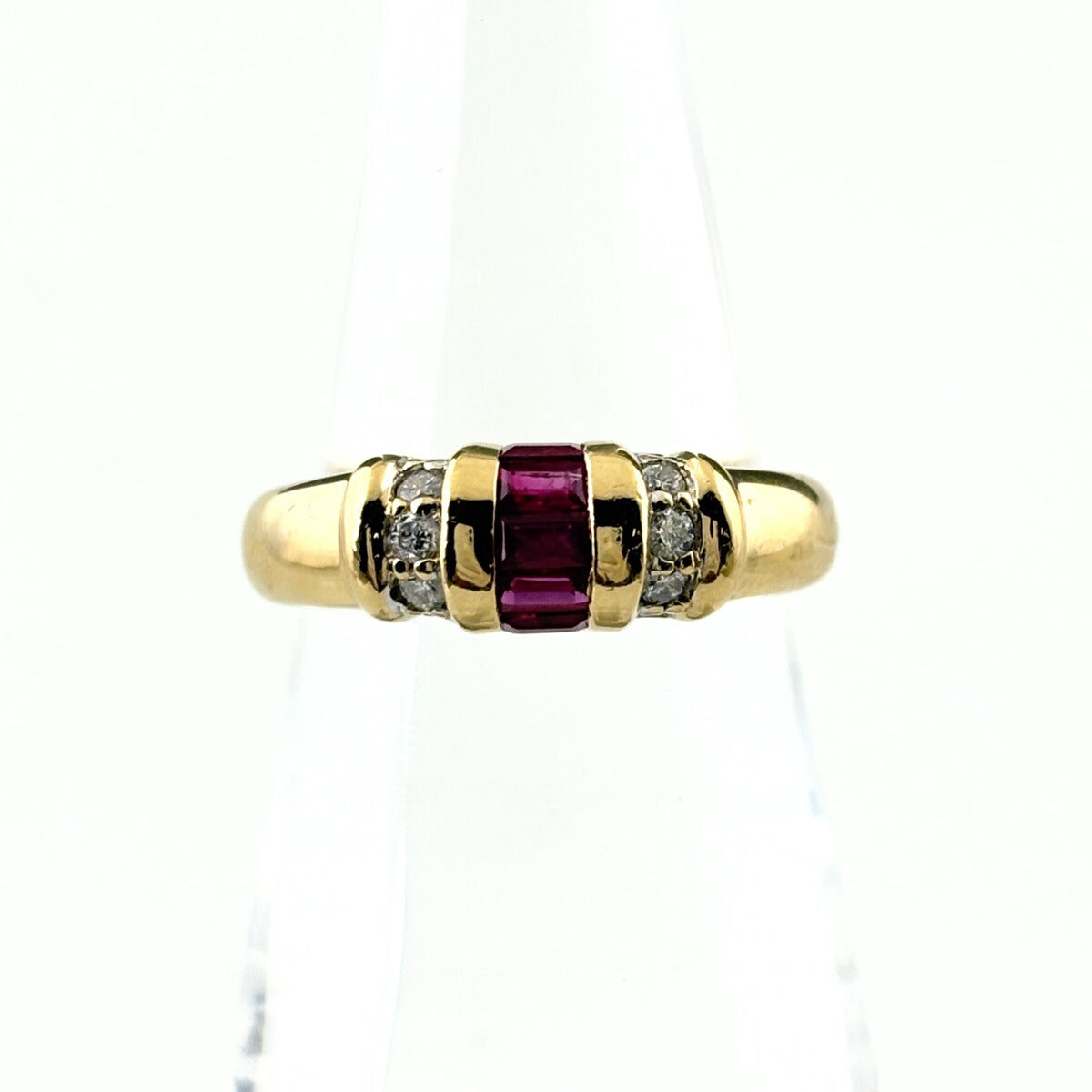 ルビー デザインリング YG イエローゴールド 指輪 メレダイヤ リング 12号 K18 ルビー ダイヤモンド レディース ノンブランドジュエリー 【中古】nbjwl